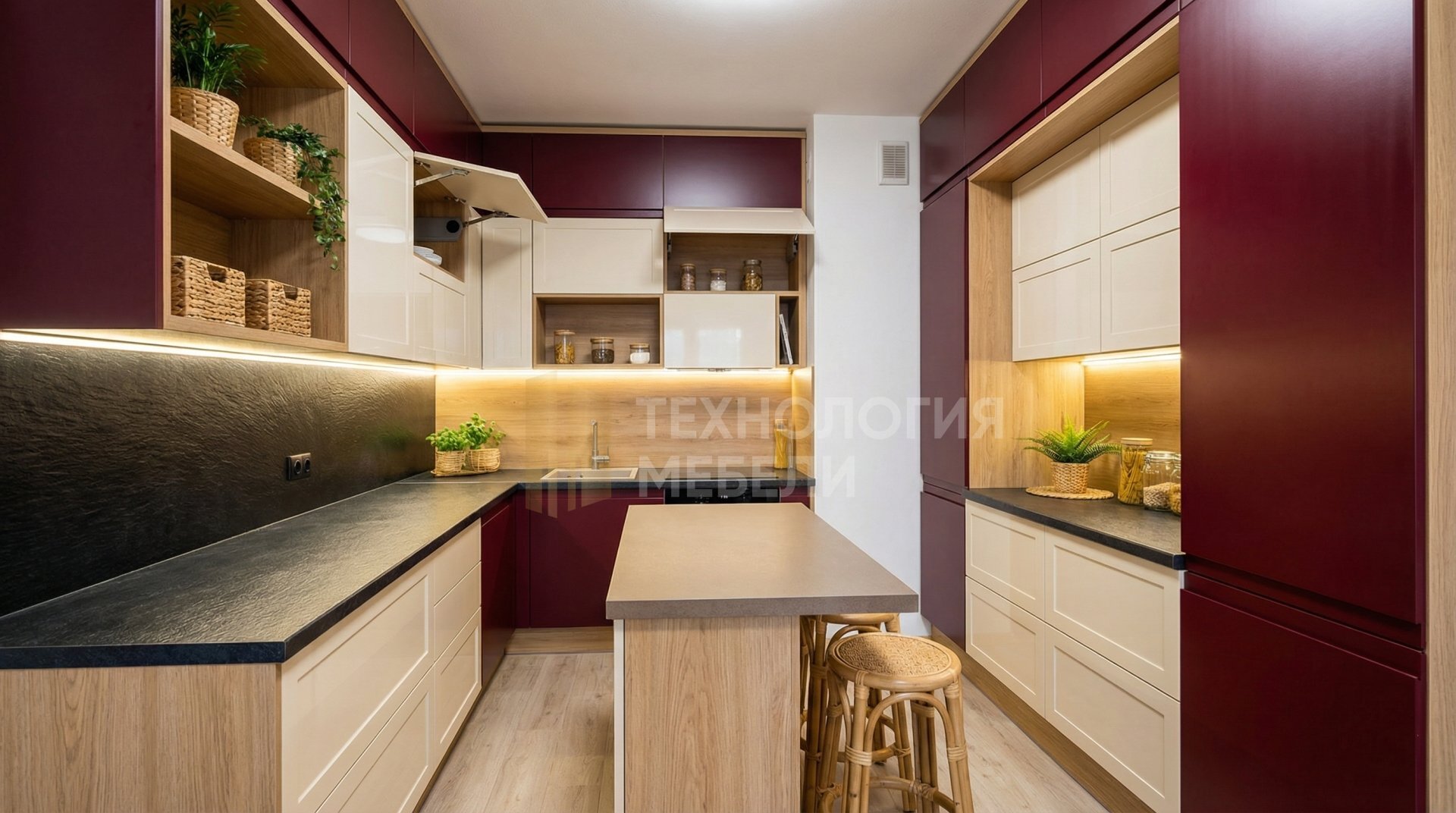 Заказывая кухню 1.8 м на нашей фабрике, вы получаете мебель, изготовленную точно под размеры вашего помещения. Мы учитываем расположение труб, розеток и вентиляции, чтобы монтаж прошел идеально.