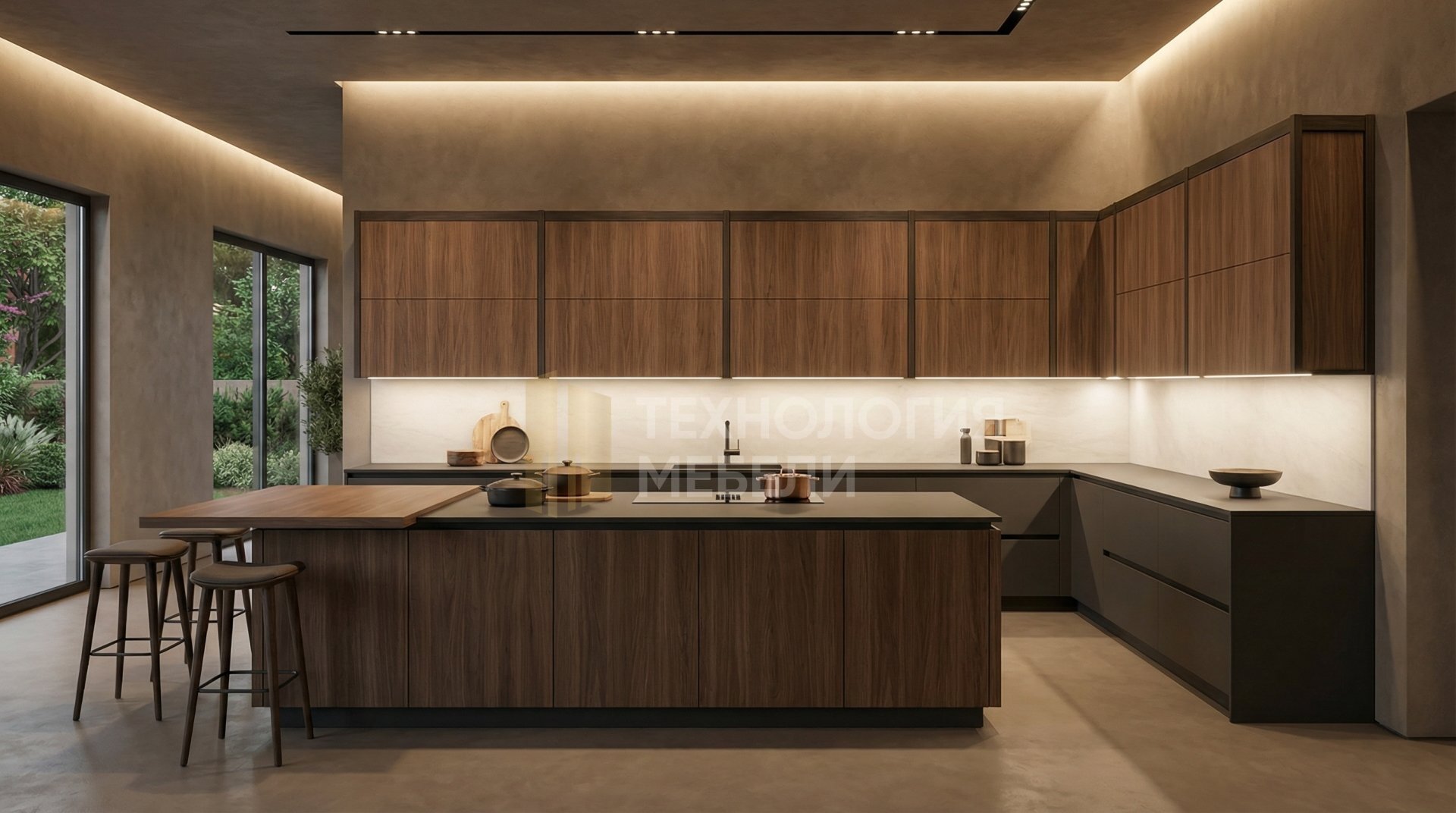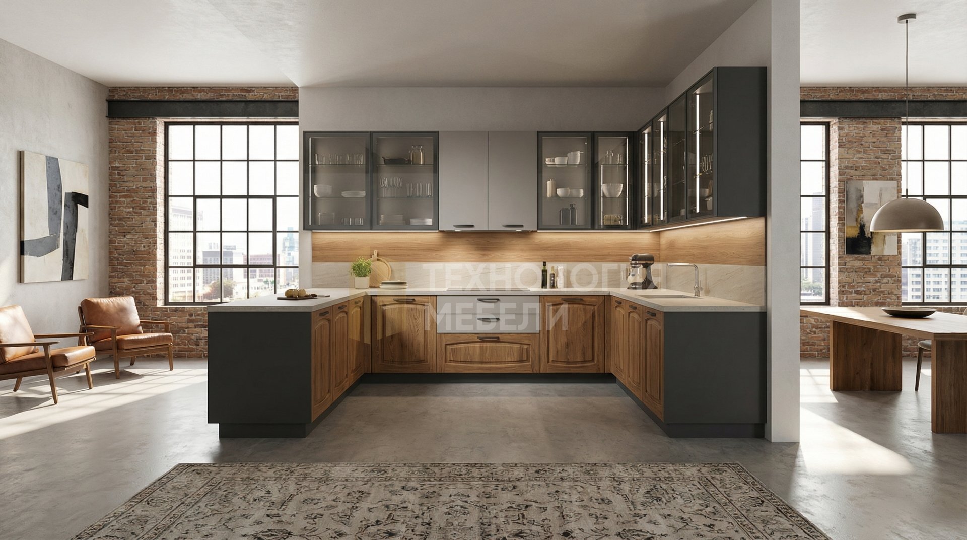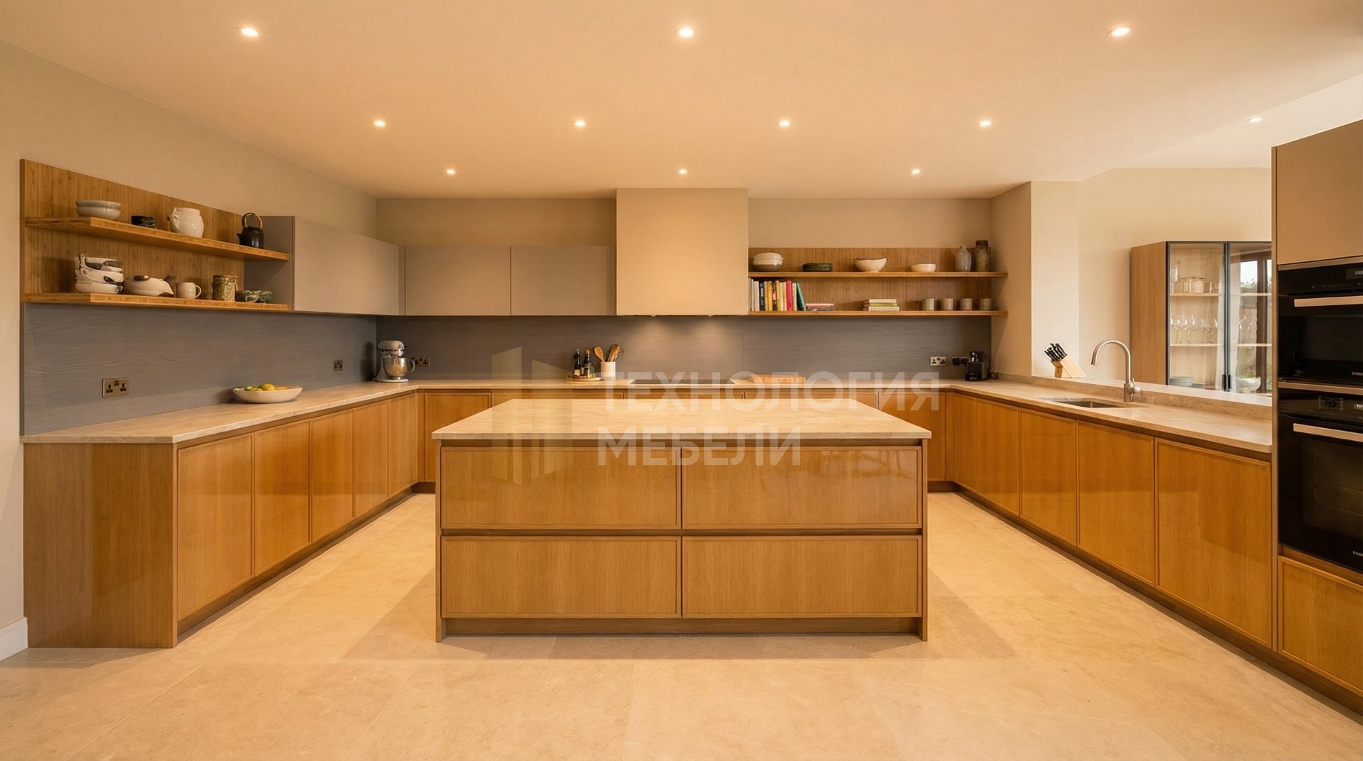 Мы изготавливаем П-образные кухни на заказ с учётом размеров помещения, расположения коммуникаций и ваших привычек приготовления. Доступны любые конфигурации и стили: