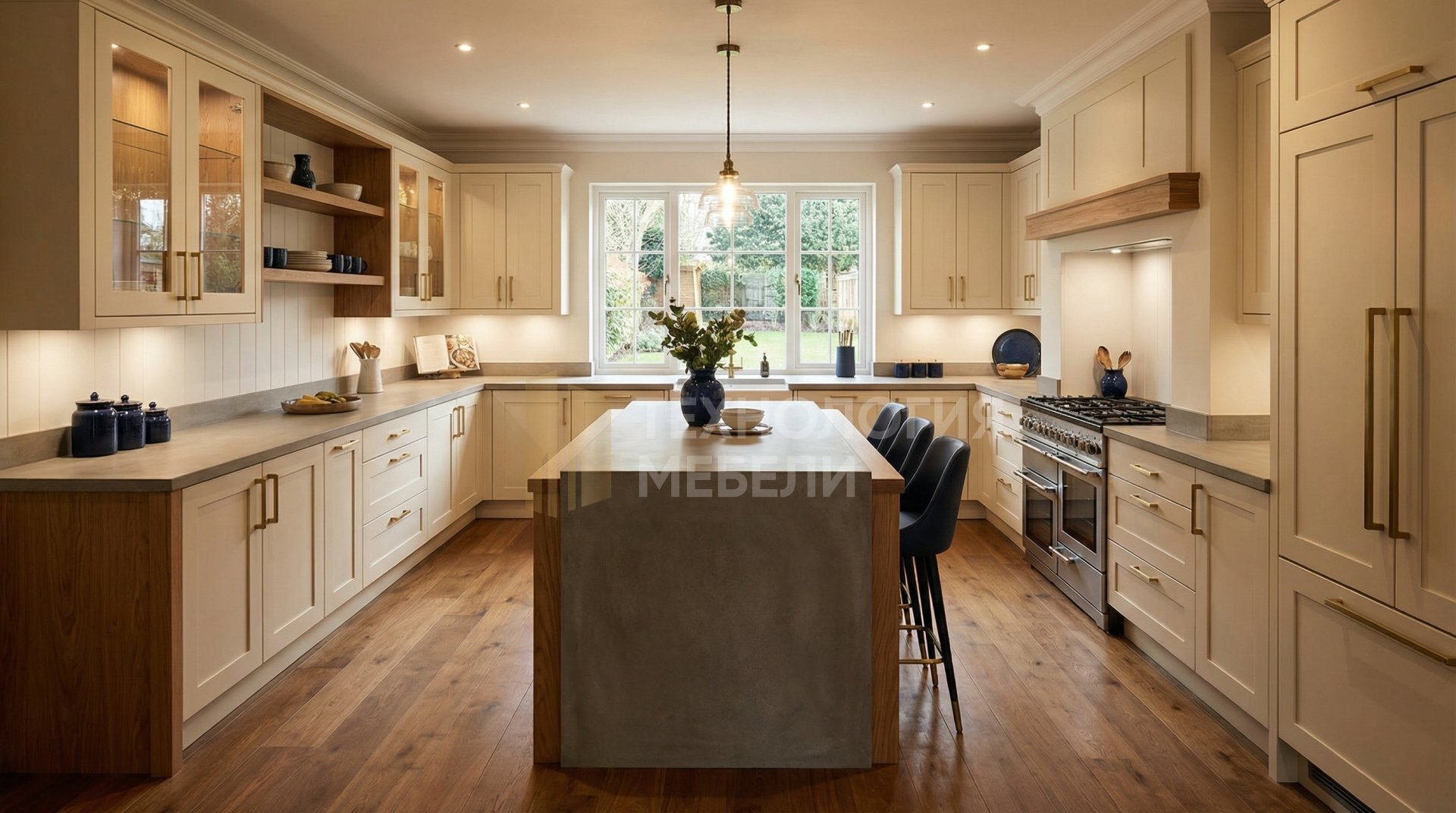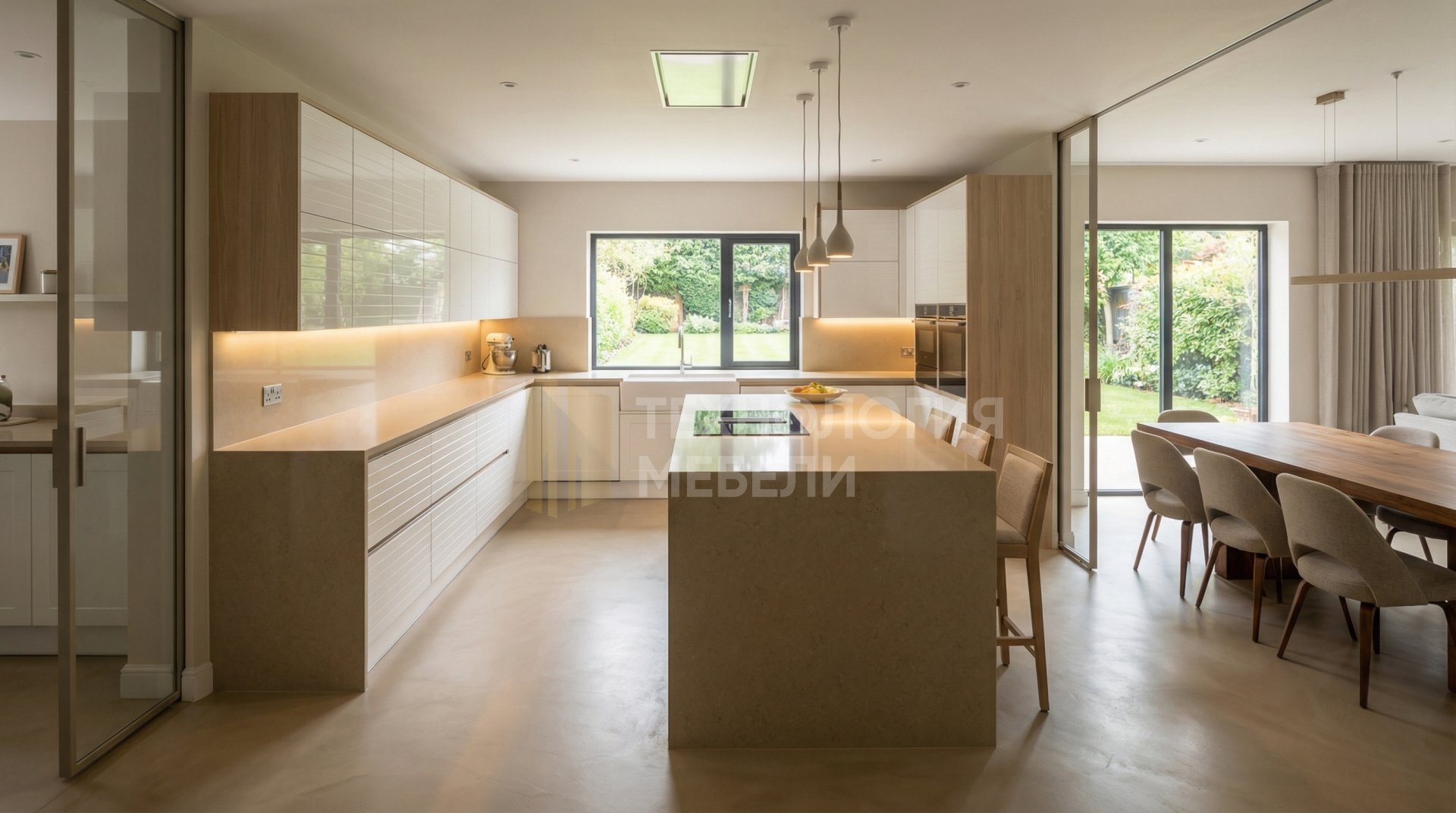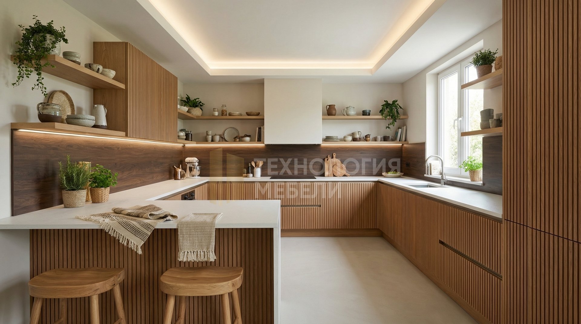 Мы изготавливаем П-образные кухни на заказ с учётом размеров помещения, расположения коммуникаций и ваших привычек приготовления. Доступны любые конфигурации и стили: