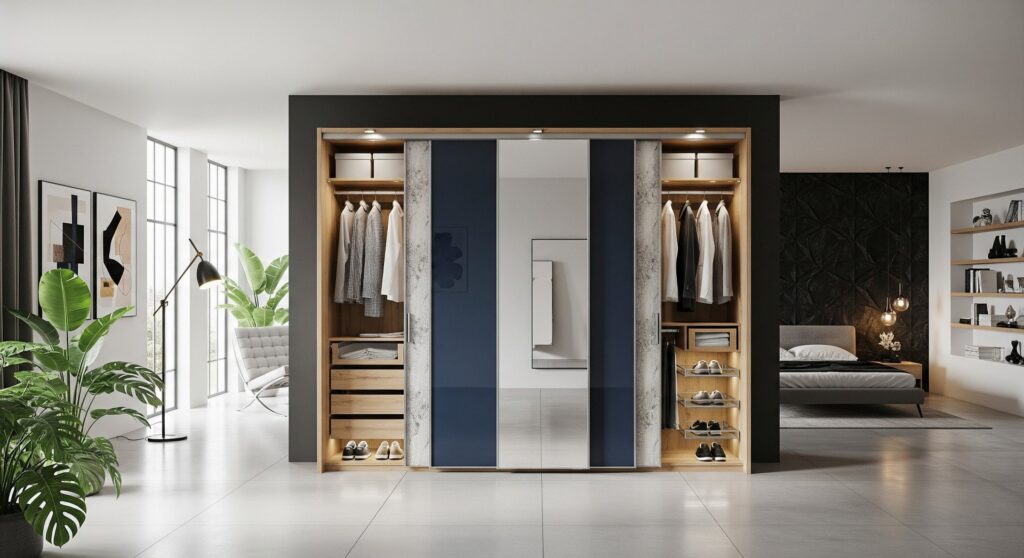 Шкафы-купе с эмалированными фасадами — это воплощение безупречного стиля и индивидуальности. В отличие от стандартных покрытий, эмаль позволяет создать монолитную поверхность без видимых кромок, превращая мебель в настоящее произведение интерьерного искусства, которое идеально подходит как для строгой классики, так и для смелого минимализма.