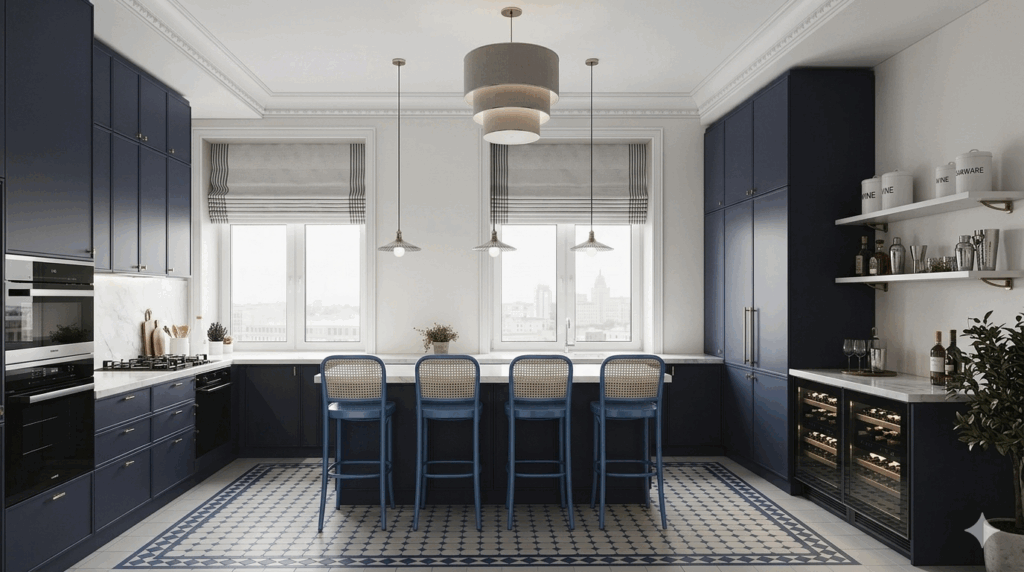 На этом этапе проект обретает характер. Я подбираю палитру материалов, фактуры фасадов и надежную фурнитуру. Моя цель — создать визуально безупречный интерьер, который впишется в рамки запланированного бюджета.