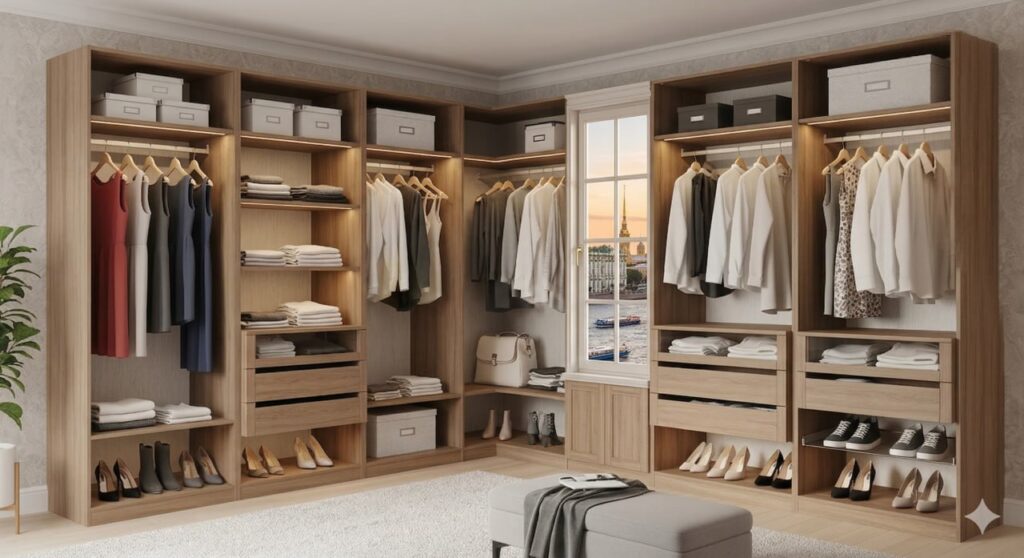 Проектирую внутреннее наполнение шкафов и кухонь, опираясь на правила «невидимого порядка». Я просчитываю каждое движение: от того, как открывается фасад, до удобства доступа к самым дальним секциям хранения.