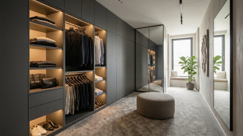 Результат: Больше никаких поисков и мятой одежды. Гардеробная стала местом, где приятно начинать день, спокойно подбирая образ в атмосфере уюта и полного порядка.