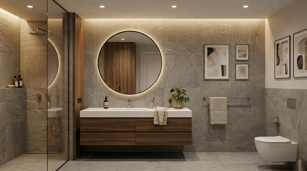 Результат: Ванная превратилась в личный спа-уголок. Теперь взгляд отдыхает на чистых поверхностях и красивой отделке.
