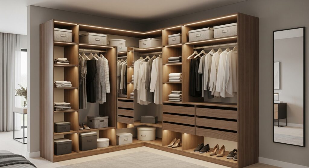 Результат: Больше не нужно перебирать стопки одежды. В шкафу стало светло и наглядно, а утренние сборы теперь проходят без лишней спешки.