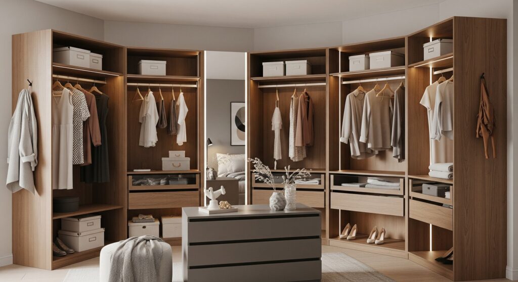 Решение: Мы добавили удобные выдвижные элементы и разделили пространство на понятные секции. Теперь у каждой вещи — от любимого свитера до аксессуаров — появилось своё место.