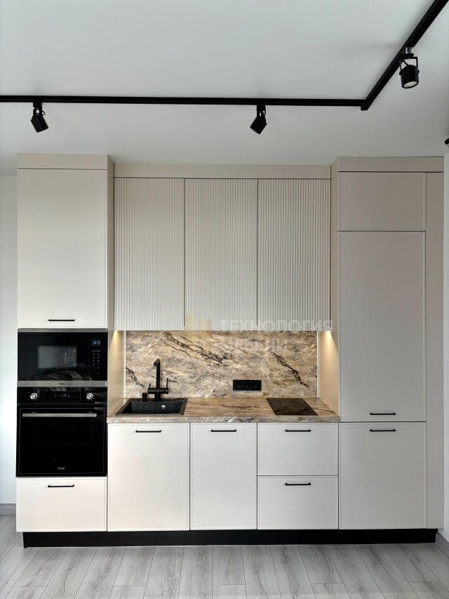 Приедем в удобное время с образцами материалов, сделаем точный лазерный замер и подготовим 3D-эскиз вашей будущей кухни.
