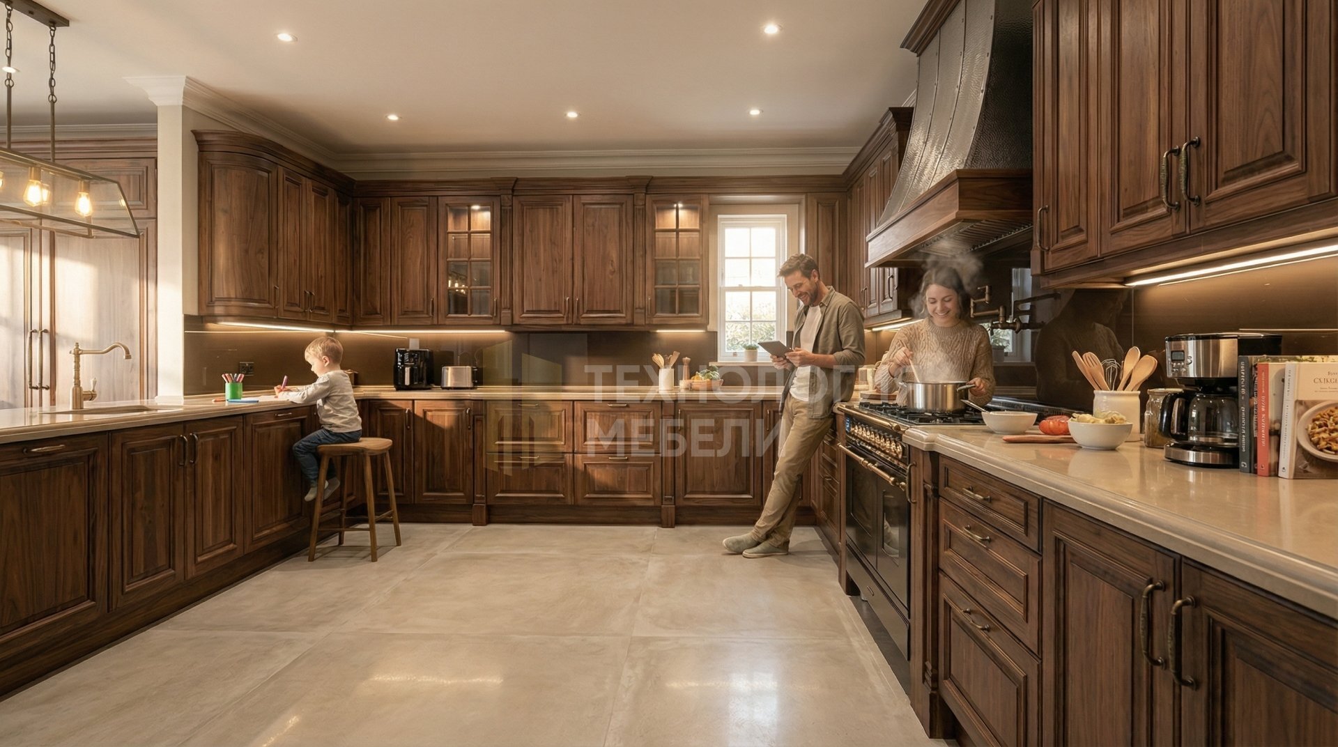 Кухня Аврора - воплощение классического стиля, созданная для ценителей элегантности. Корпус выполнен из влагостойкого ЛДСП цвета Дуб. Фасады МДФ с фрезеровкой, гладкой фактурой, цвета Натуральный орех дополнены стеклом в профиле для придания легкости. Столешница из глянцевого искусственного камня Бежевого цвета идеально сочетается с фартуком из закаленного стекла оттенка Тёмный орех. Материалы включают металл, композитные материалы, керамогранит и микроцемент, гарантируя долговечность. Функциональность обеспечивают выдвижные ящики и ручки-скобы. Рабочая зона подсвечивается точечными светильниками. Верхние модули стандартной высоты, открытые полки отсутствуют, создавая цельный образ. Длина кухни составляет 3.6 метра. Кухонный остров отсутствует.
