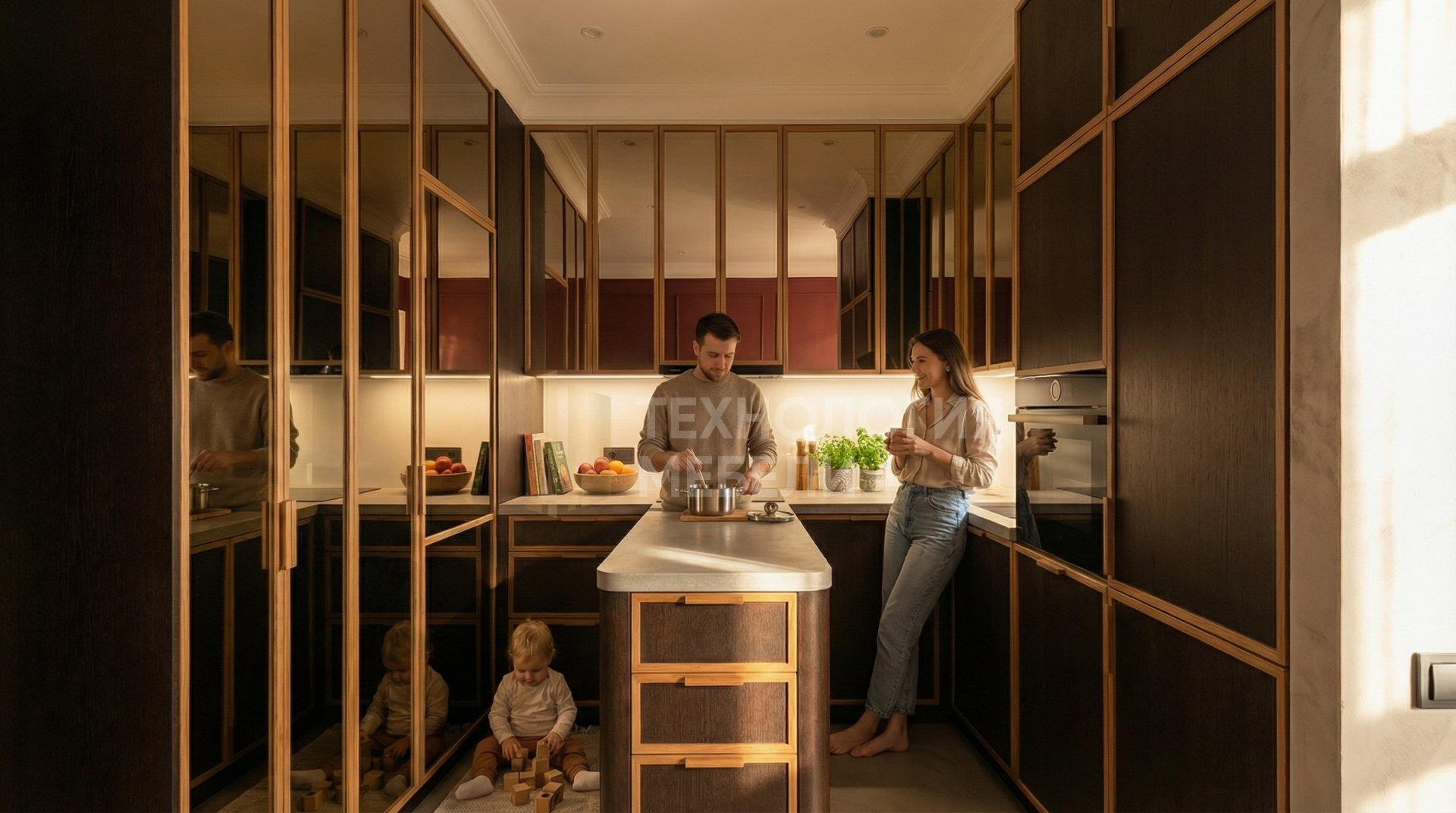 Приедем в удобное время с образцами материалов, сделаем точный лазерный замер и подготовим 3D-эскиз вашей будущей кухни.