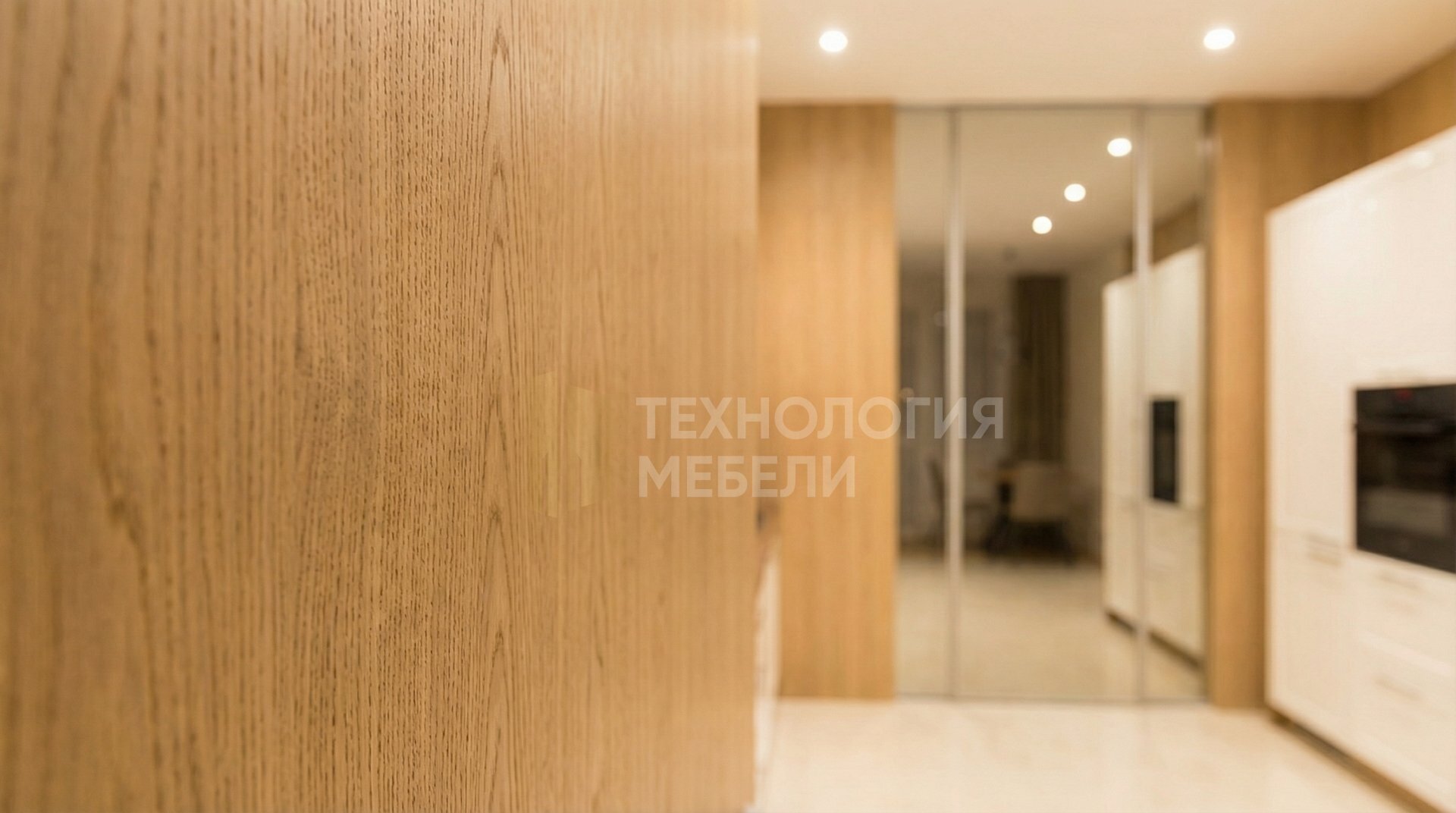 Кухня "Элита", 3.6 м, в стиле минимализм. Корпус выполнен из МДФ цвета натурального дерева, рамочные фасады МДФ, гладкие, белый глянец. Столешница: матовый HPL-пластик, натуральный орех. Фартук: закаленное стекло с фотопечатью. Основные материалы: дерево, стекло, керамогранит, шпон, зеркальные панели. Открывание выдвижное, ручки-скобы. Верхние модули стандартной высоты, открытые полки отсутствуют. Форма кухни прямая, без кухонного острова. Подсветка рабочей зоны не предусмотрена, но используются точечные светильники.