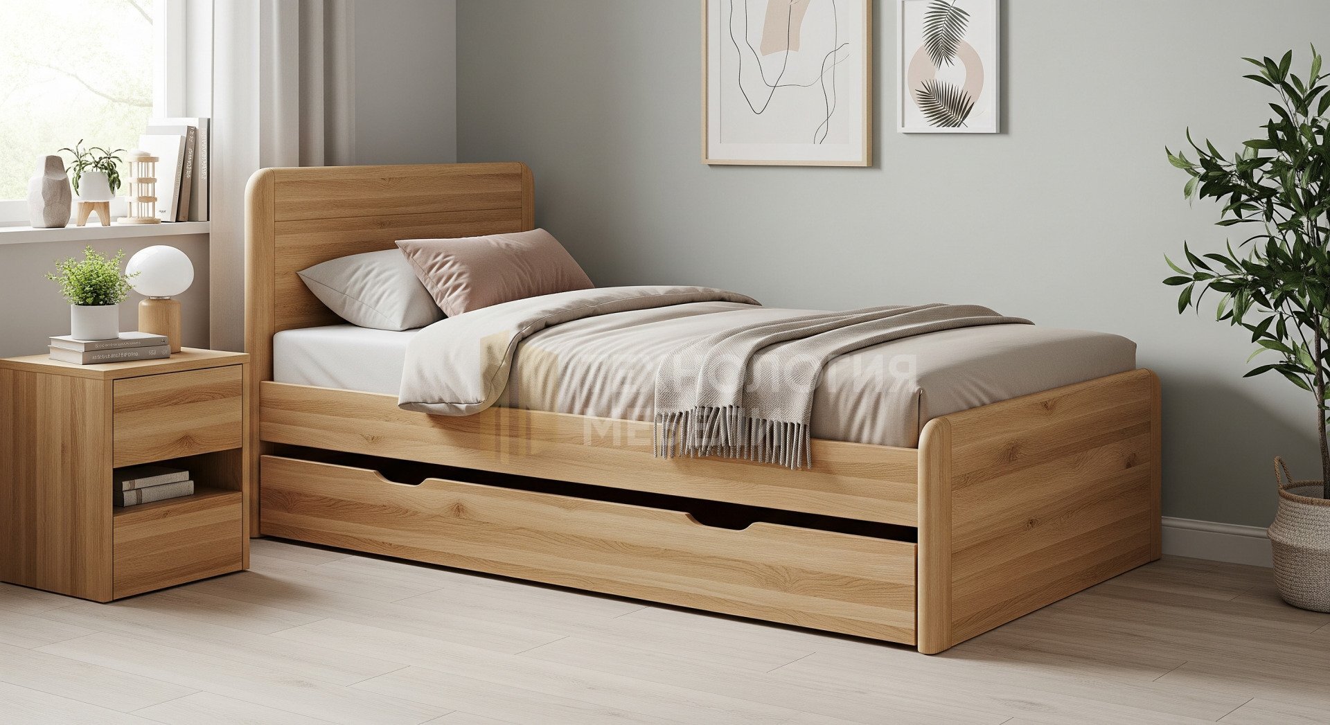 Представляем кровать Эсмера – идеальное спальное место, созданное специально для подростковой возрастной категории. Эта корпусная кровать в скандинавском стиле привносит в интерьер легкость и функциональность. Каркас выполнен из массива дерева в светлом оттенке, обладающем матовой фактурой, что гарантирует прочность и современный вид. Изящное закругленное изголовье из МДФ придает модели утонченность и безопасность, а отсутствие изножья делает пространство комнаты более открытым и воздушным. Основание кровати — реечное, с ламелями из прочной березы, обеспечивающими оптимальную поддержку и вентиляцию матраса для здорового сна. Функциональность подчеркивает один удобный выдвижной ящик для хранения, позволяющий эффективно использовать пространство под кроватью для постельного белья или личных вещей, помогая поддерживать порядок. Кровать Эсмера относится к категориям "Кровати" и "Детская", и её конструкция позволяет использовать её даже в составе двухъярусной кровати, предлагая универсальные решения для любой детской или подростковой комнаты. Мы предлагаем Эсмеру в нескольких цветовых вариантах: Светлый дуб (#D7C4A3), Тёплый орех (#6B4A2F) и Светлое дерево (#E3D2B8), что позволяет легко интегрировать её в существующий дизайн. Эсмера — это воплощение комфорта и стиля, сочетающее в себе натуральные материалы, такие как массив дерева и МДФ, с продуманным дизайном для полноценного и здорового отдыха.