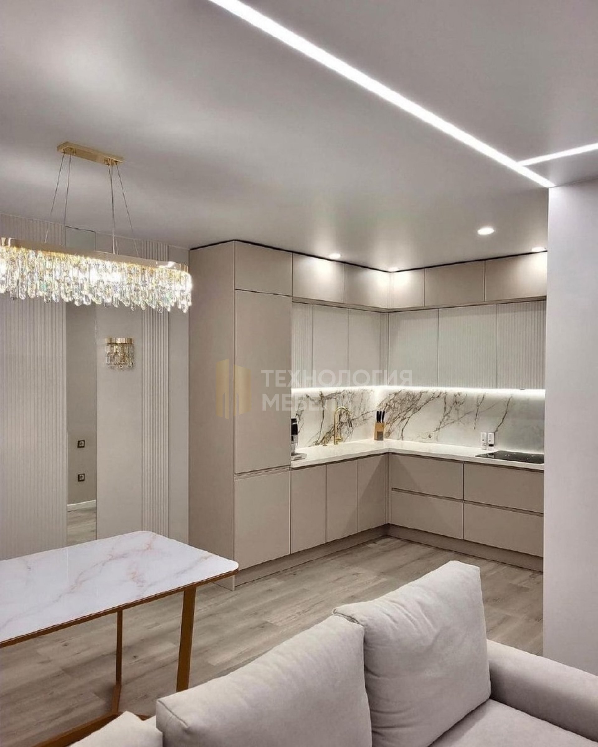 Приедем в удобное время с образцами материалов, сделаем точный лазерный замер и подготовим 3D-эскиз вашей будущей кухни.