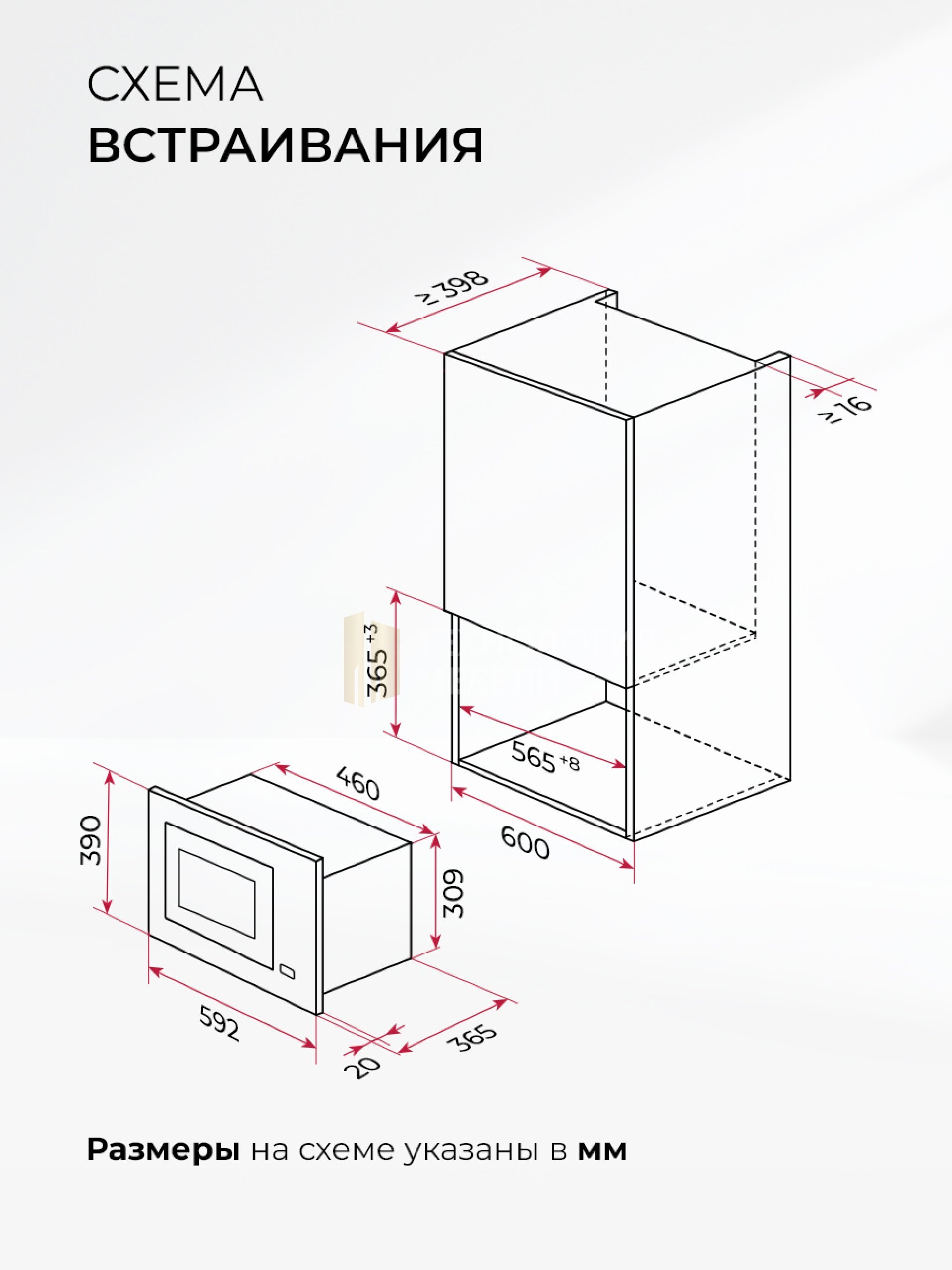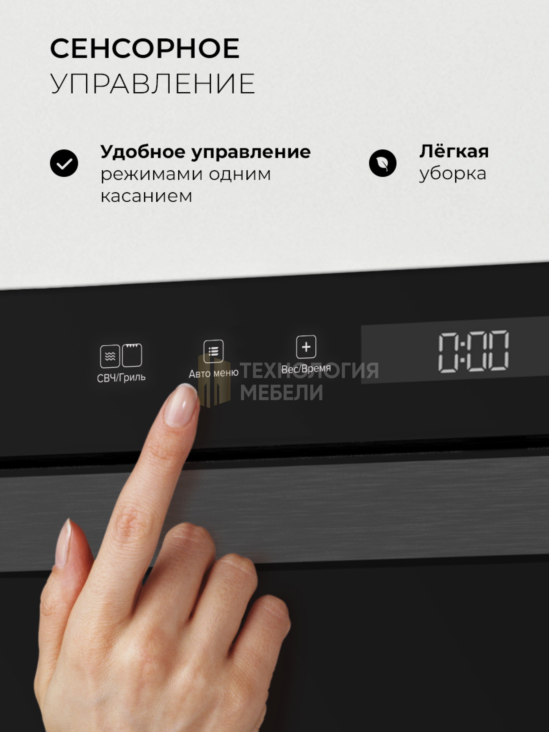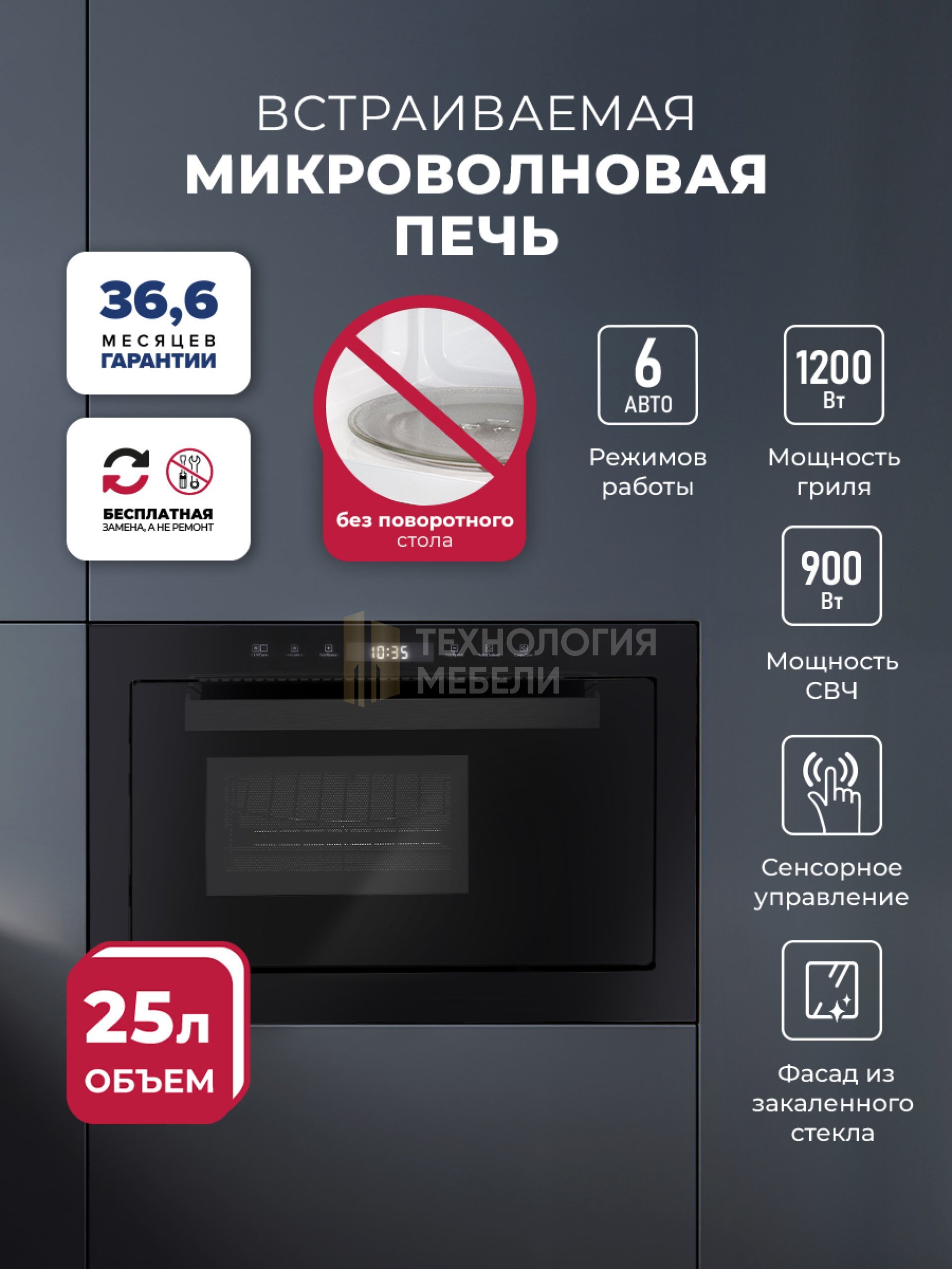 Встраиваемые микроволновые печи СВЧ серии BIMO 25.03 выгодно отличаются от большинства текущих моделей на рынке отсутствием поворотного стола, что в сочетании с сенсорной панелью управления TOUCH CONTROL, информативным LCD дисплеем, современным дизайном и максимальным набором функций, делает модели этих серий современным помощником при приготовлении и подчёркивает уникальный стиль Вашей кухни.