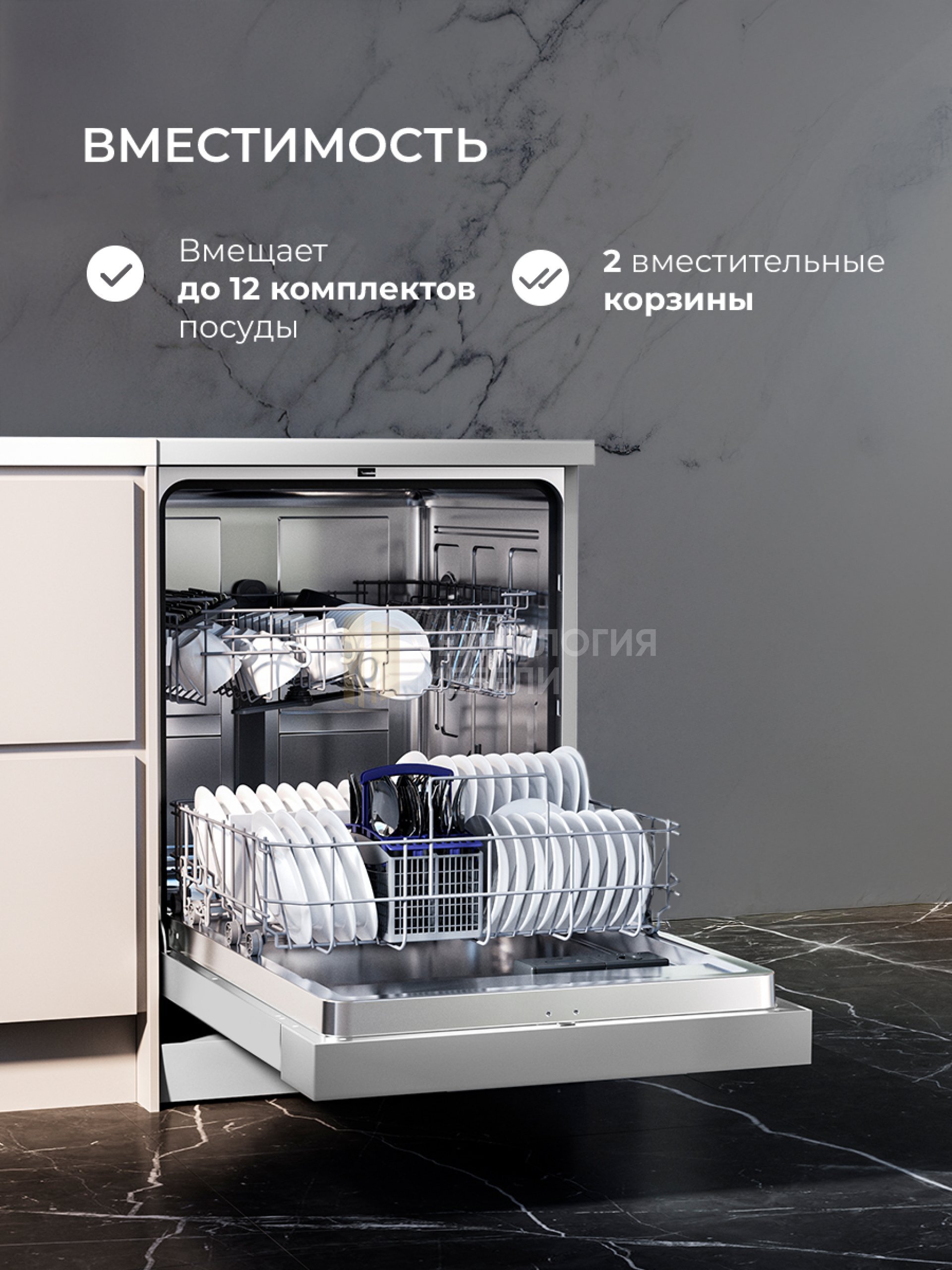 Модель DW6062N имеет отличные показатели потребления воды и электричества. Однако это не влияет на производительность и количество комплектов посуды. Модель можно установить как отдельно, так и встроить под столешницу. Набор режимов включает ускоренные и экономичные, для которых нужно еще меньше ресурсов. С конденсационной сушкой любимая посуда дольше сохранит свою красоту. Устройство не требует подачи горячей воды, нагрев происходит внутри него. Это важное преимущество, поскольку холодная водопроводная вода чище и ее не отключают в летнее время. Посудомоечная машина оснащена системой AquaBlock, которая поможет избежать протечек, и функцией отложенного старта до 24 часов, благодаря чему посуду можно мыть даже ночью. Кроме того, модель работает тихо, поэтому вам не придется переживать о том, что шум потревожит чей-то сон.