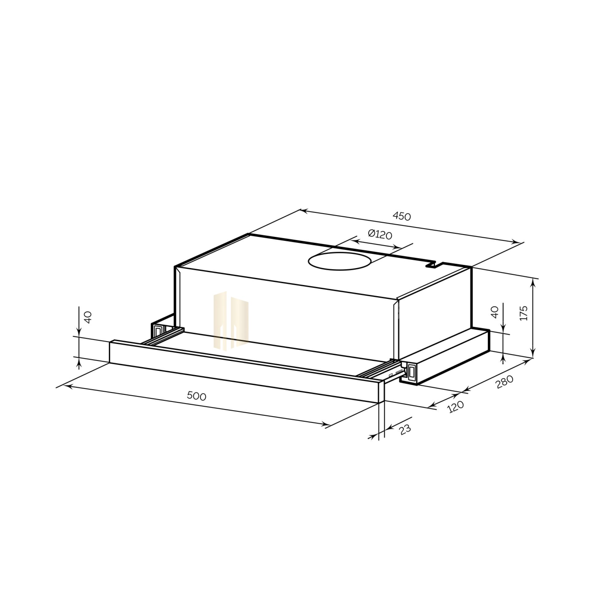 Компактная встраиваемая вытяжка эффективно и тихо очищает воздух, не мешая разговорам. При необходимости, можно увеличить зону всасывания. Для этого достаточно выдвинуть каретку.