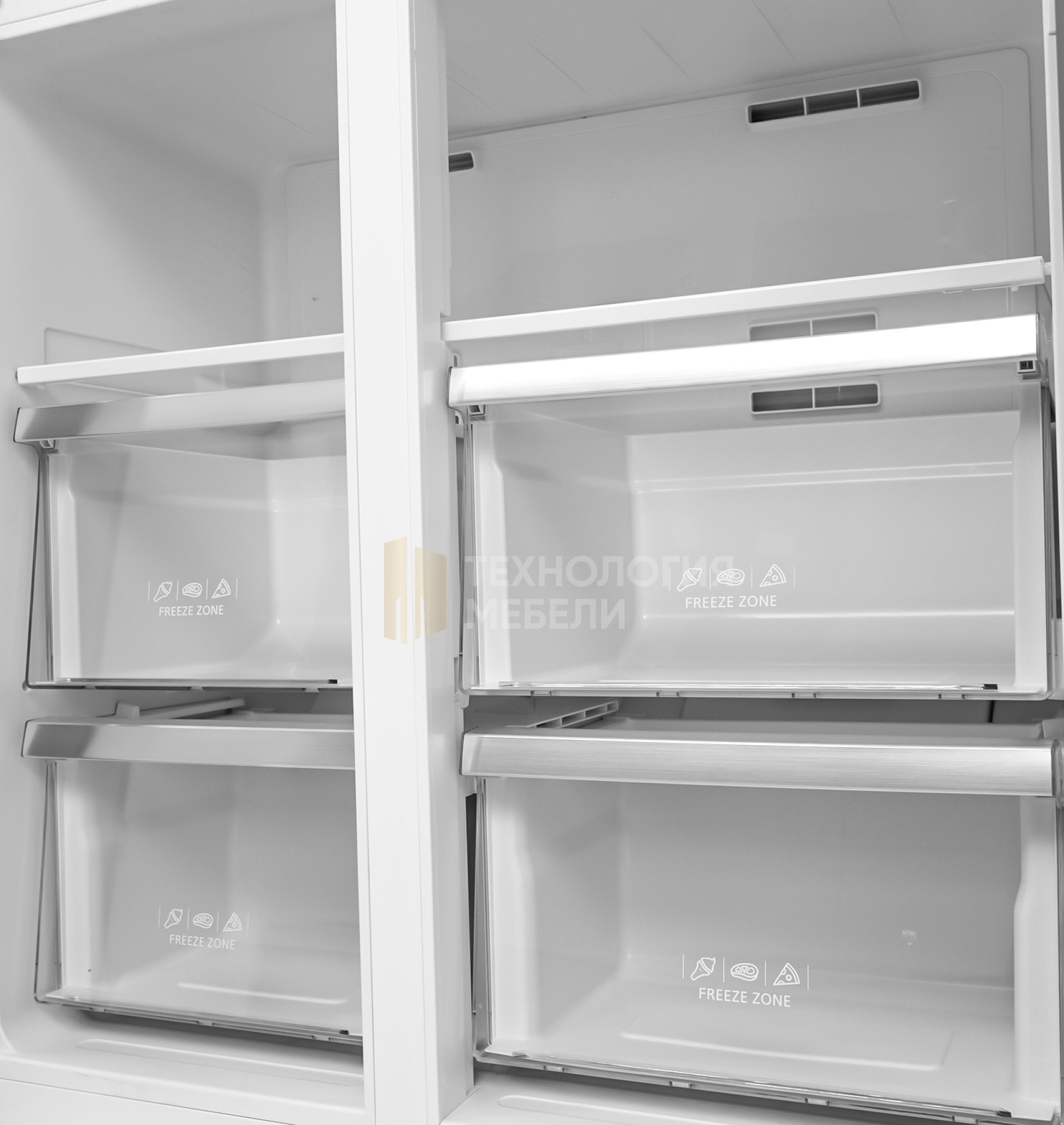 Модель LEX LCD 450 — передовые технологии и множество вариантов дизайна. Удобная панель управления и расположение дверей по типу CROSS DOOR помогут поддерживать нужные параметры хранения для каждого отделения. Холодильник с мощным, экономичным и тихим инверторным компрессором работает по технологии Total No Frost, которая не дает инею скапливаться внутри рабочих камер, значительно упрощая уход за устройством. Запатентованная многопоточная система охлаждения быстро и равномерно распределяет холодный воздух по всем зонам хранения. Модель позволяет хранить продукты при температуре от +8 °С в холодильном отделении до –23 °С в морозильном. А в режиме суперзаморозки можно установить еще более низкое значение: –28 °С. Суперрежимы позволяют максимально охладить содержимое во всех отделениях за короткое время. Это удобно, если вы загружаете сразу много продуктов, например, после похода в супермаркет или отключения электричества. В последнем случае также может пригодиться режим поддержания температуры, который будет работать 10 часов. Еще одна полезная функция — «Отпуск»: когда она активна, в каждой камере устанавливается температура, оптимальная одновременно и для сохранения свежести продуктов, и для уменьшения расхода электричества. Для этого холодильника можно выбрать один из шести стилей матового или глянцевого, стеклянного или металлического корпуса в разных цветах.