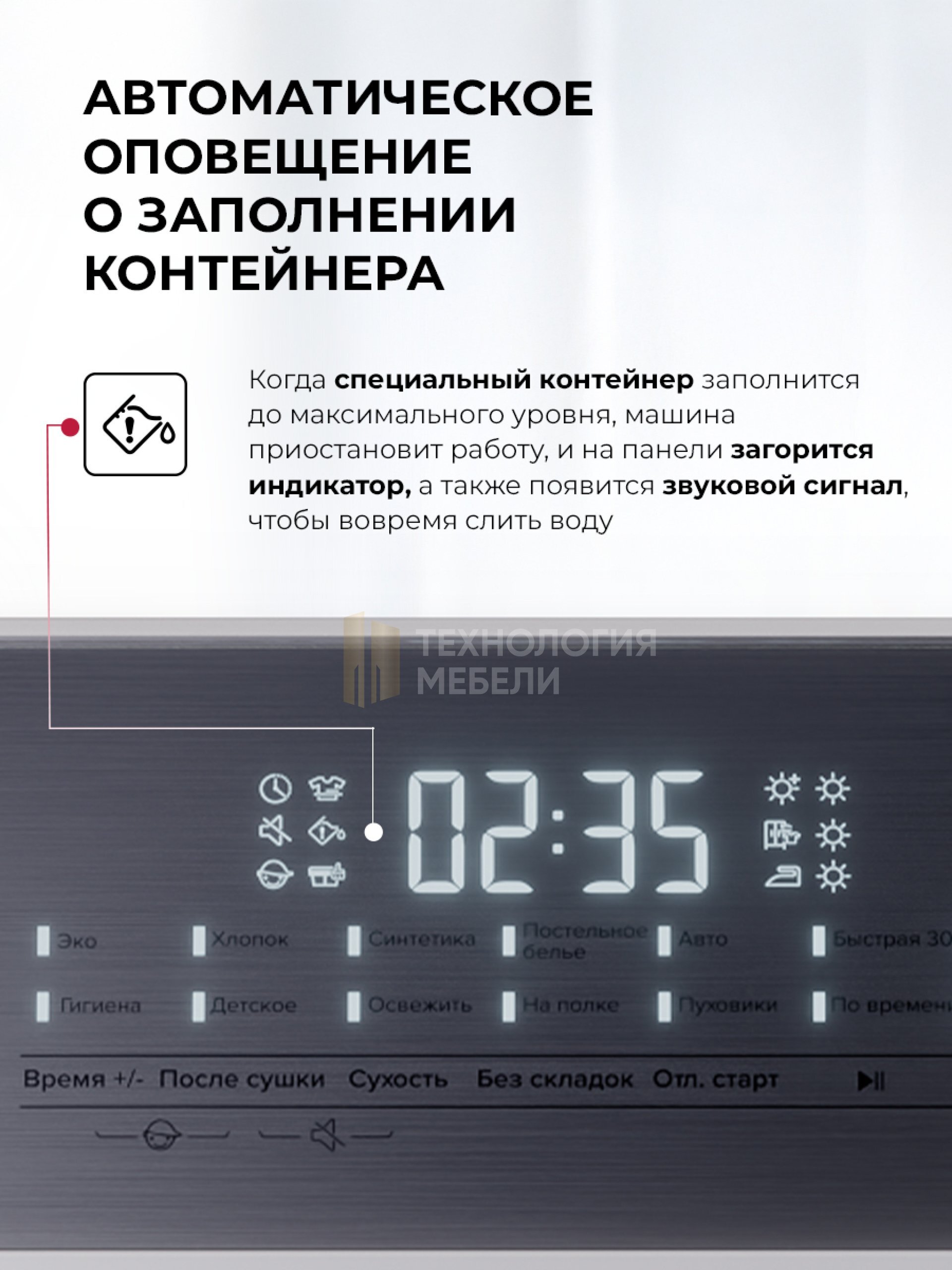 Кол-во программ Авто, Быстрая, Гигиена, Детская одежда, На полке, Освежить, По времени, Постельное белье, Пуховики, Синтетика, Спортивная одежда, Хлопок, Шерсть, ЭКО