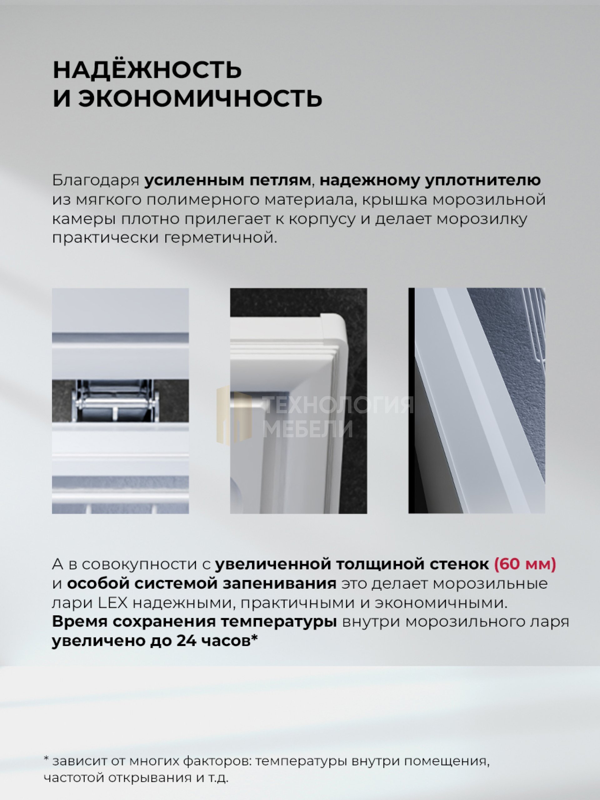 Одним из главных преимуществ этой холодильно-морозильной камеры является ее возможность длительного автономного сохранения холода – до 16 часов. Это означает, что при любой чрезвычайной ситуации ваши продукты продолжат сохранять свежесть!