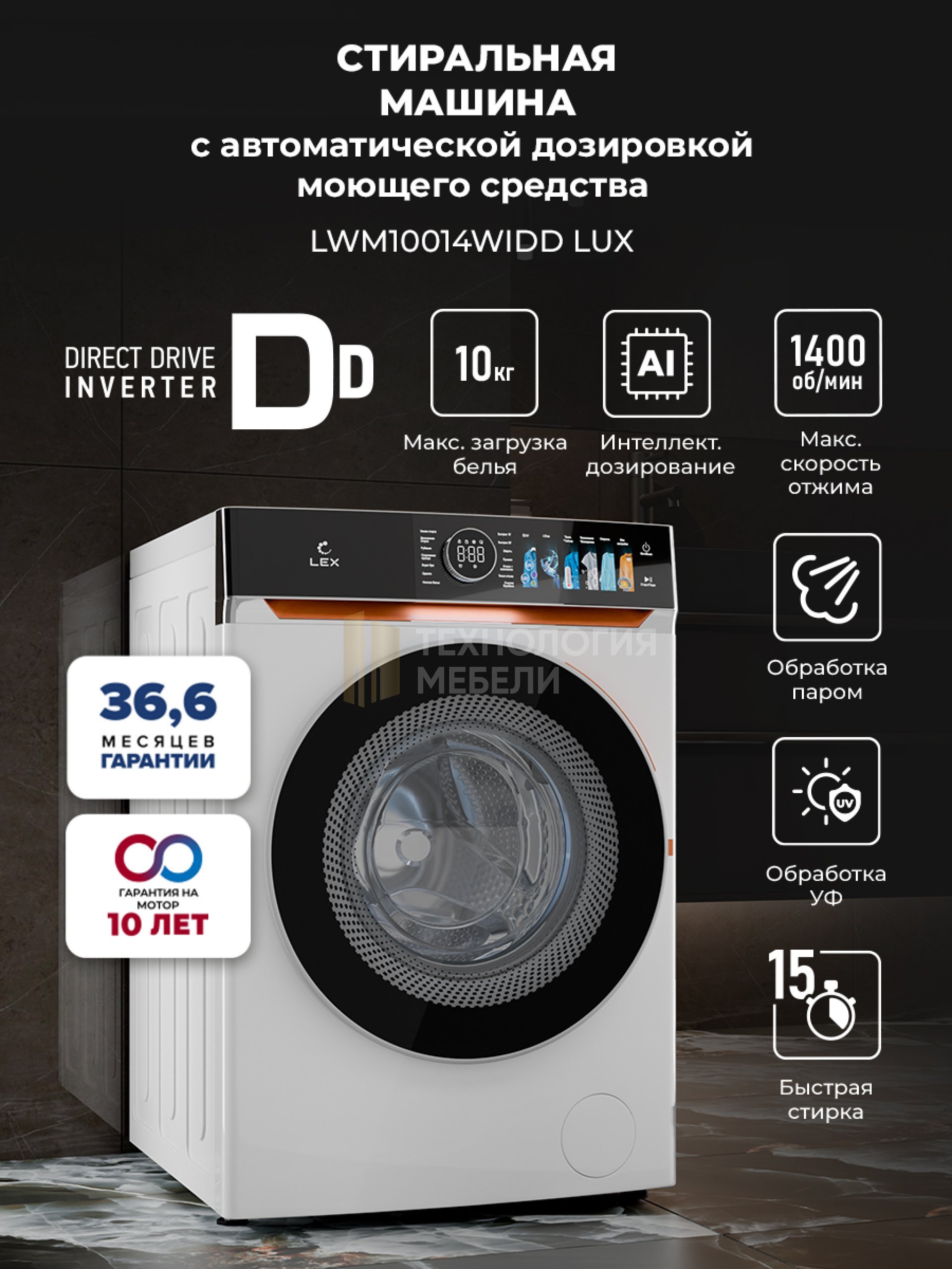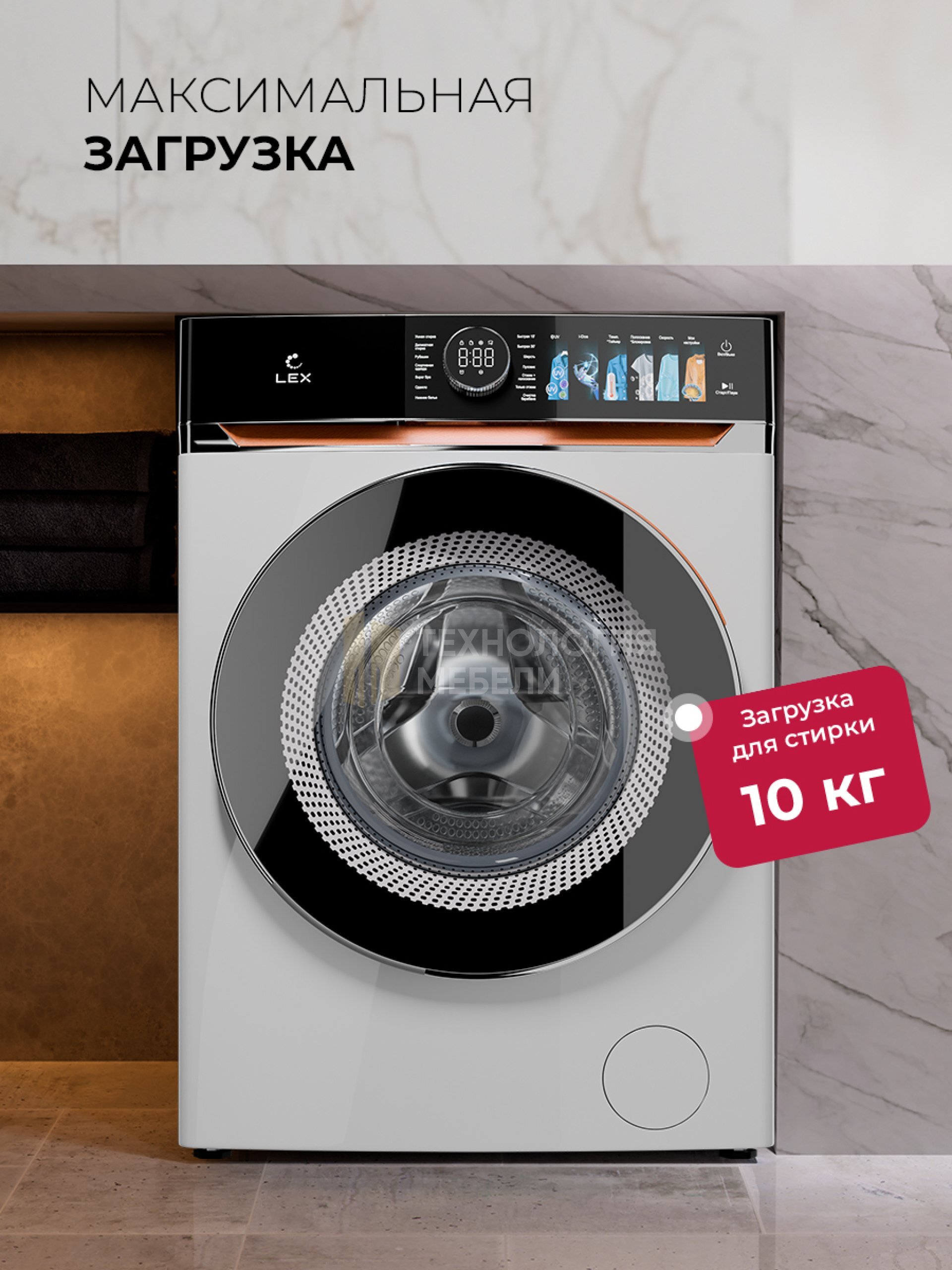 Модель LEX LWM10014 Lux — это отдельностоящая стиральная машина с сенсорным управлением и премиальным дизайном, доступная в черном и белом цветах.