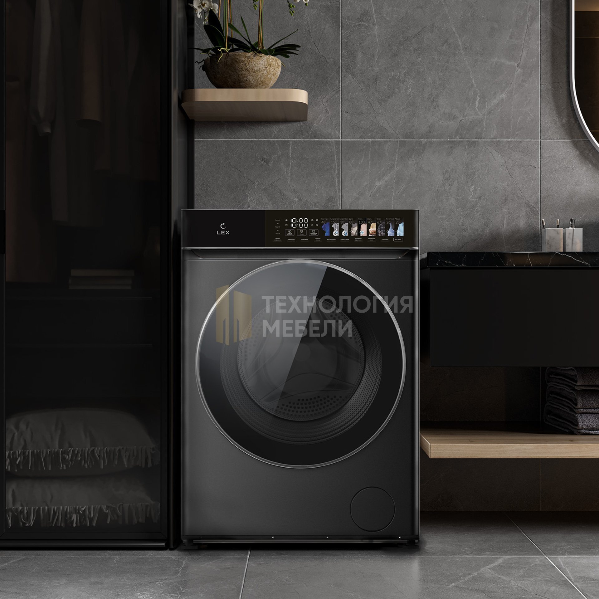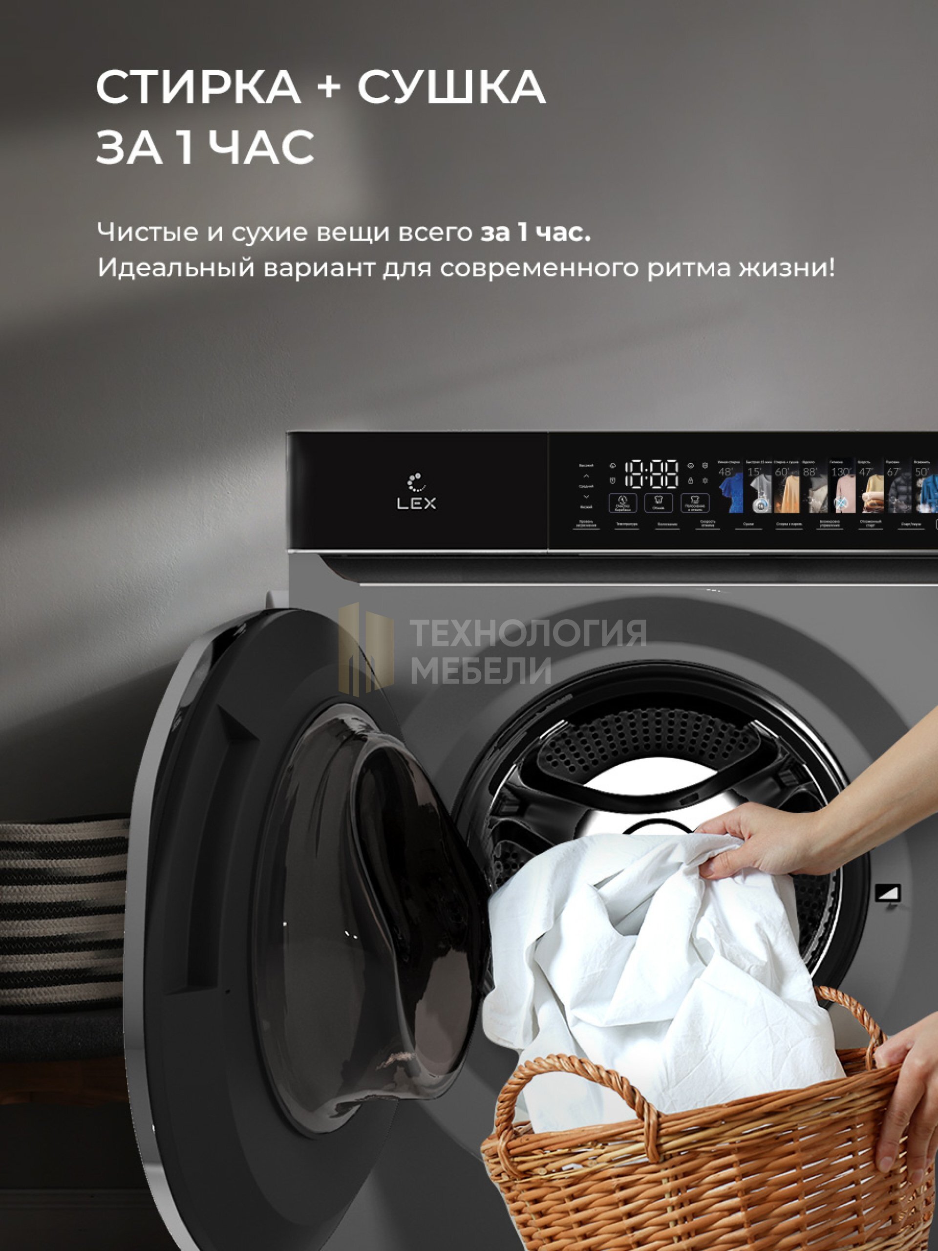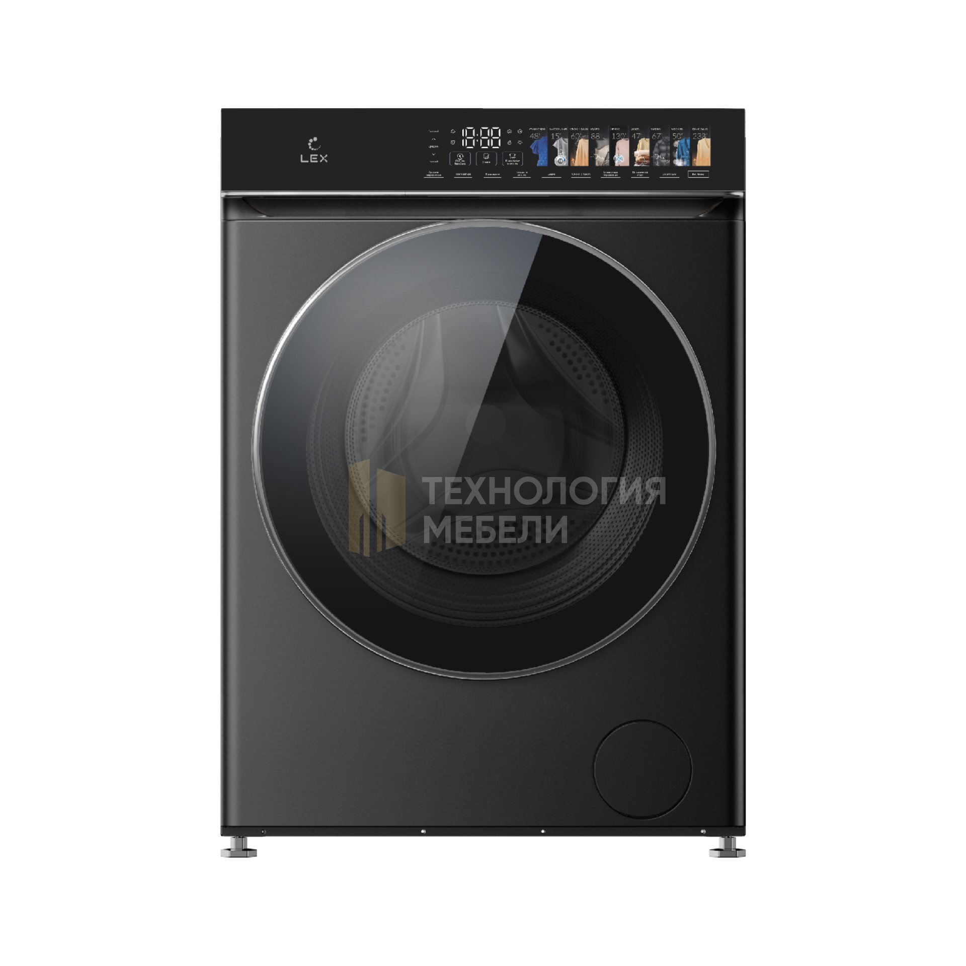 Модель LEX LWM10712 color — это отдельностоящая стирально-сушильная машина в черном и белом корпусе с цветной сенсорной панелью управления. Важные преимущества: