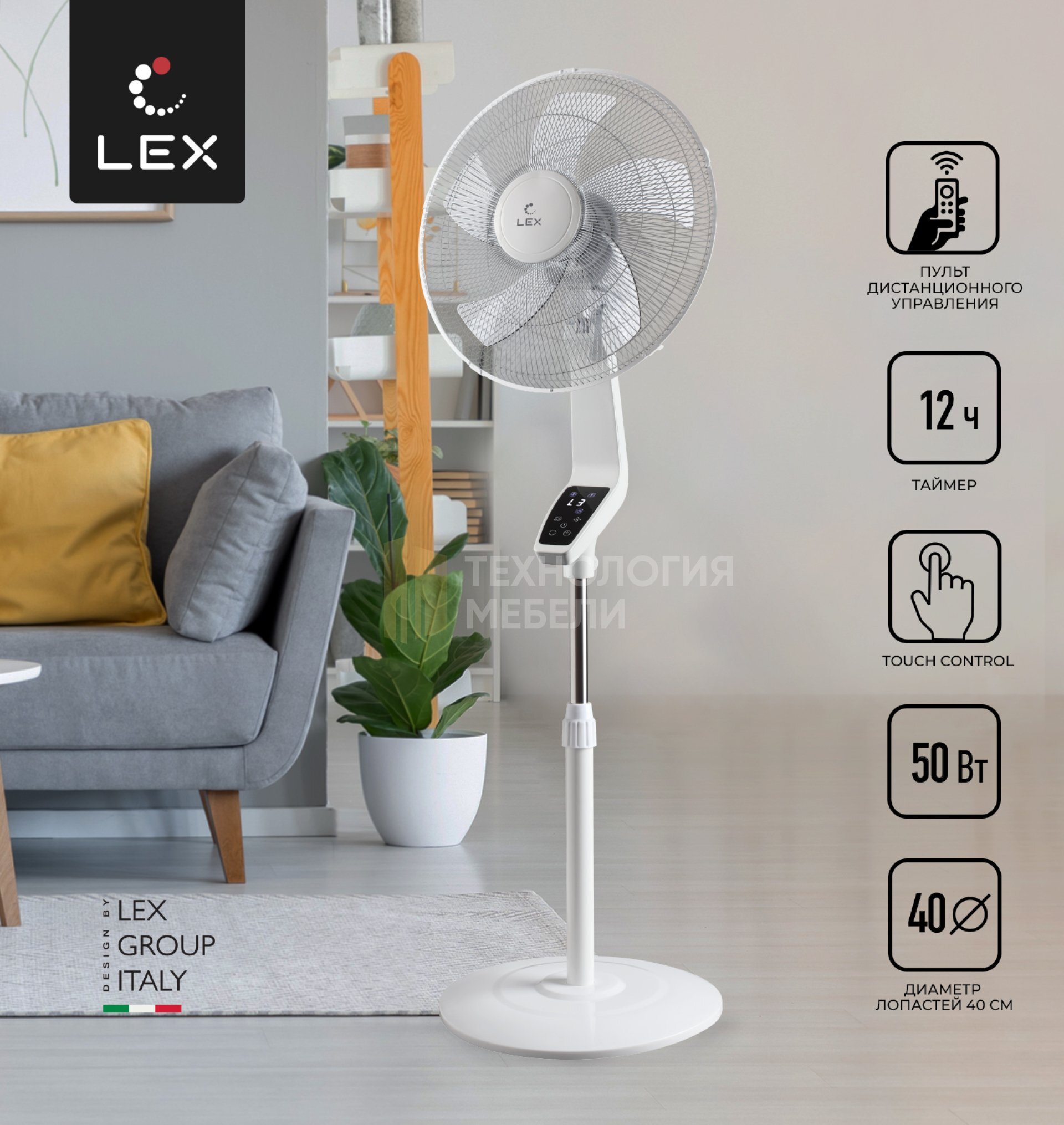 Стильный внешний вид и новейшие технические решения управления TOUCH CONTROL — это то, что позволит вам остановить свой выбор на топовой модели LXFC 8342. Благодаря высокой мощности долговечного медного мотора 50 Вт в сочетании с большим размером ∅ 40 см специального 5-ти лопастного винта, устройство быстро охлаждает воздух в помещении даже при самой жаркой погоде. Данный вентилятор предлагает три скорости работы – от низкой для ночного времени, до высокой для мгновенного охлаждения, а также набор дополнительных функций и комфортных характеристик: дистанционное управление, автоматический поворот и изменение угла обдува, удобную регулировку по высоте. Встроенный таймер с диапазоном от 0,5 до 12 часов всегда поможет подобрать удобное время для проветривания помещения. Вентилятор максимально безопасен в пользовании. Несмотря на высоту 135 см и массивность корпуса, прибор надежно сбалансирован и благодаря специальной конструкции усиленной дисковой опоры HIGH STABILITY основания модели обладает повышенной устойчивостью. Вращающаяся часть вентилятора выполнена с использованием решётки PROTECT GRID, которая имеет рёбра жёсткости и множественные прутья. Такая конструкция не позволяет появиться деформации при механических воздействиях, а также предохраняет от травм при случайном прикосновении.