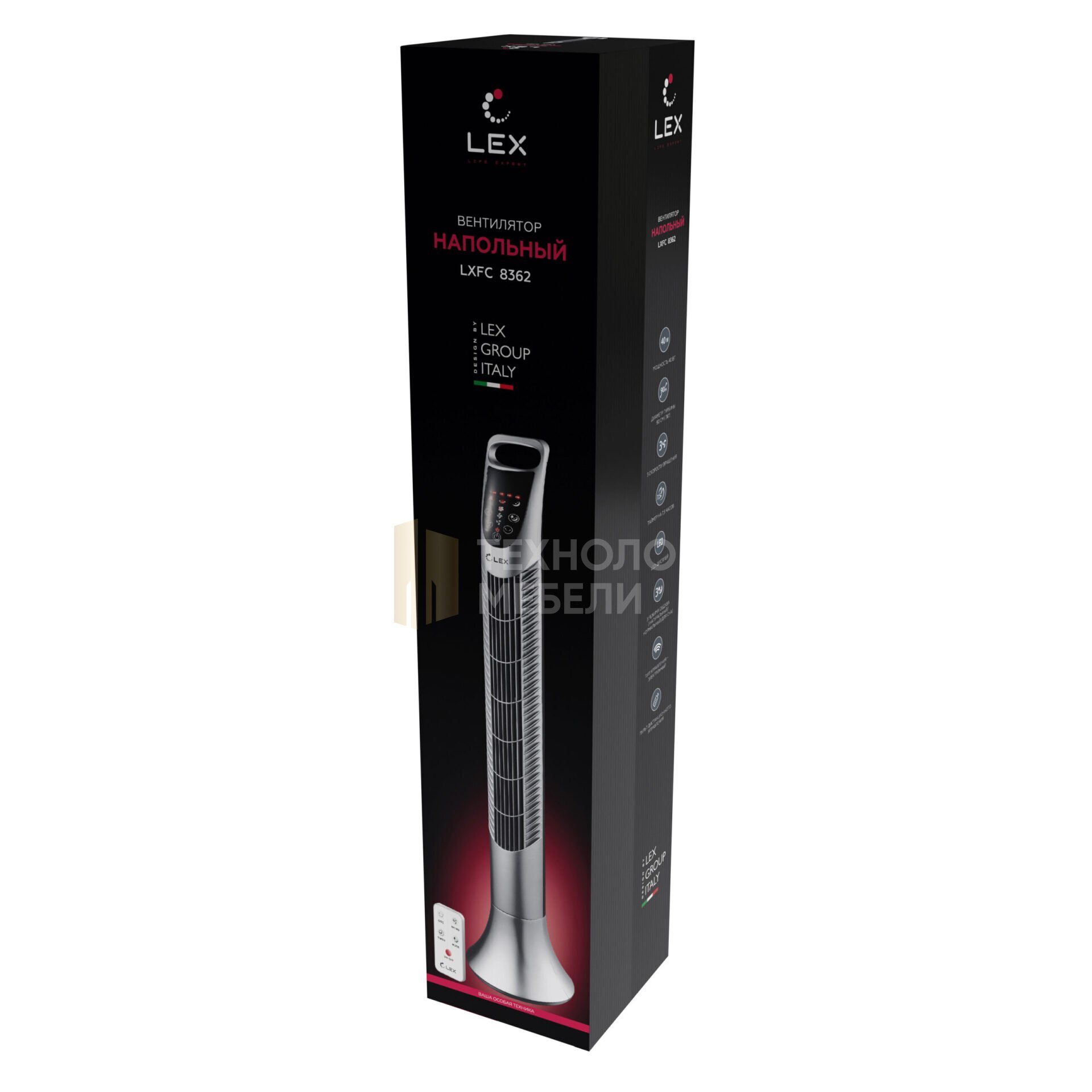 Вентилятор колонный высотой 90 см LXFC 8362 — достойный выбор. Сочетание мощности, компактности и лаконичного дизайна позволят устройству вписаться в любой современный интерьер. Модель оснащена 3 скоростными режимами и 3 авторежимами, поэтому вы можете легко настраивать мощность воздушного потока по собственному усмотрению. Благодаря надежному основанию и роторной конструкции лопастей, вентилятор не теряет устойчивость даже при высокой скорости вращения лопастей. Электронная панель управления оборудована LED индикацией выбранной мощности, поэтому даже в темноте вы будете знать, какая из скоростей в данный момент включена. Компактный пульт ДУ и таймер с диапазоном от 0,5 до 7,5 часов, полностью избавят от постоянной беготни для внесения изменений в режимах работы модели. Для удобства переноски вентилятор имеет компактную ручку.