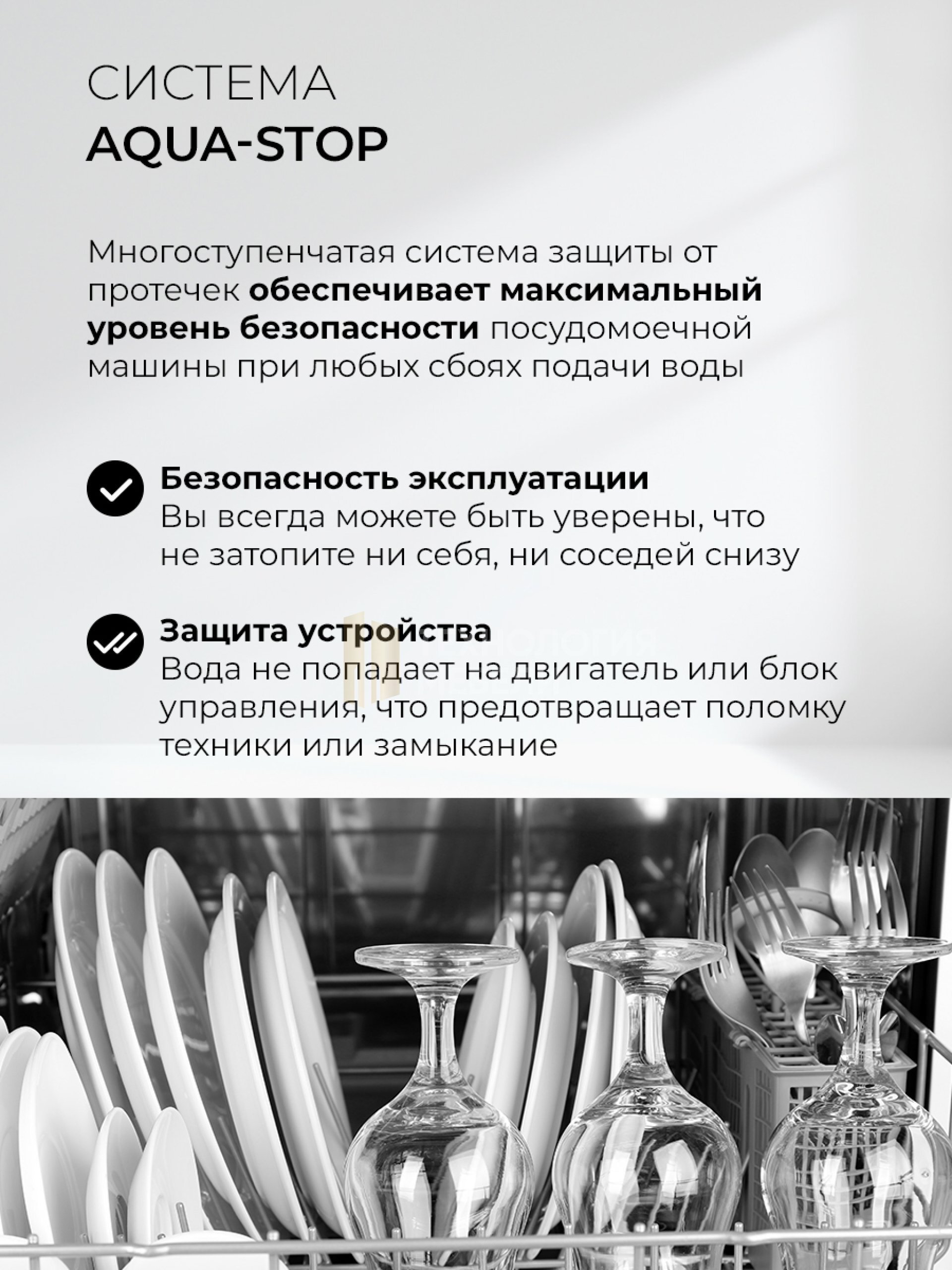 Модель обладает классом энергопотребления А и при загрузке 14 комплектов расходует только 10 литров воды.