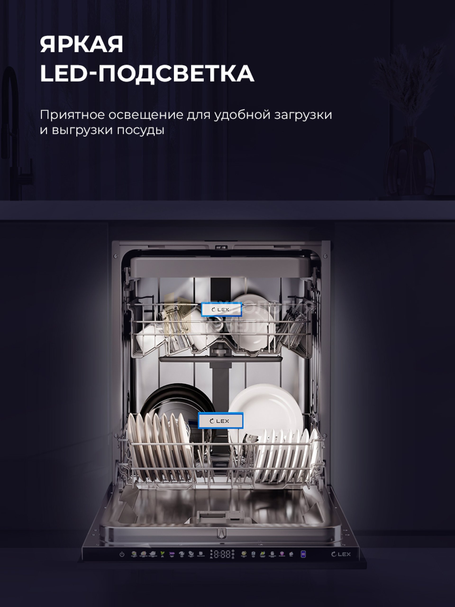 LEX PM 6083А color Lux — это идеальное решение для тех, кто ценит функциональность, удобство и безопасность. Три корзины — две вместительные для посуды и одна корзина для столовых приборов. Полностью сенсорная панель из закаленного стекла с цветными изображениями придает модели современный вид и повышает её надежность.