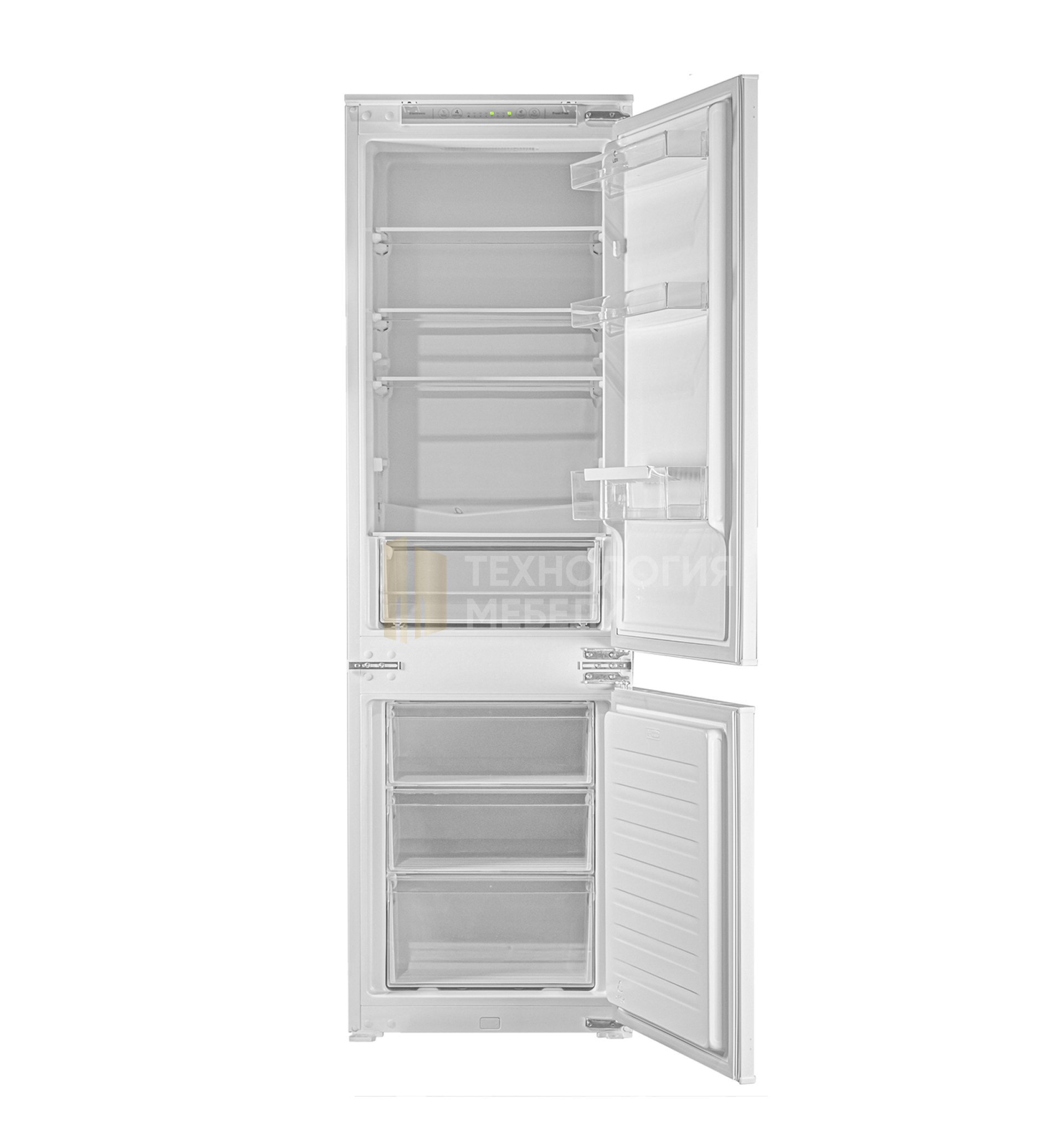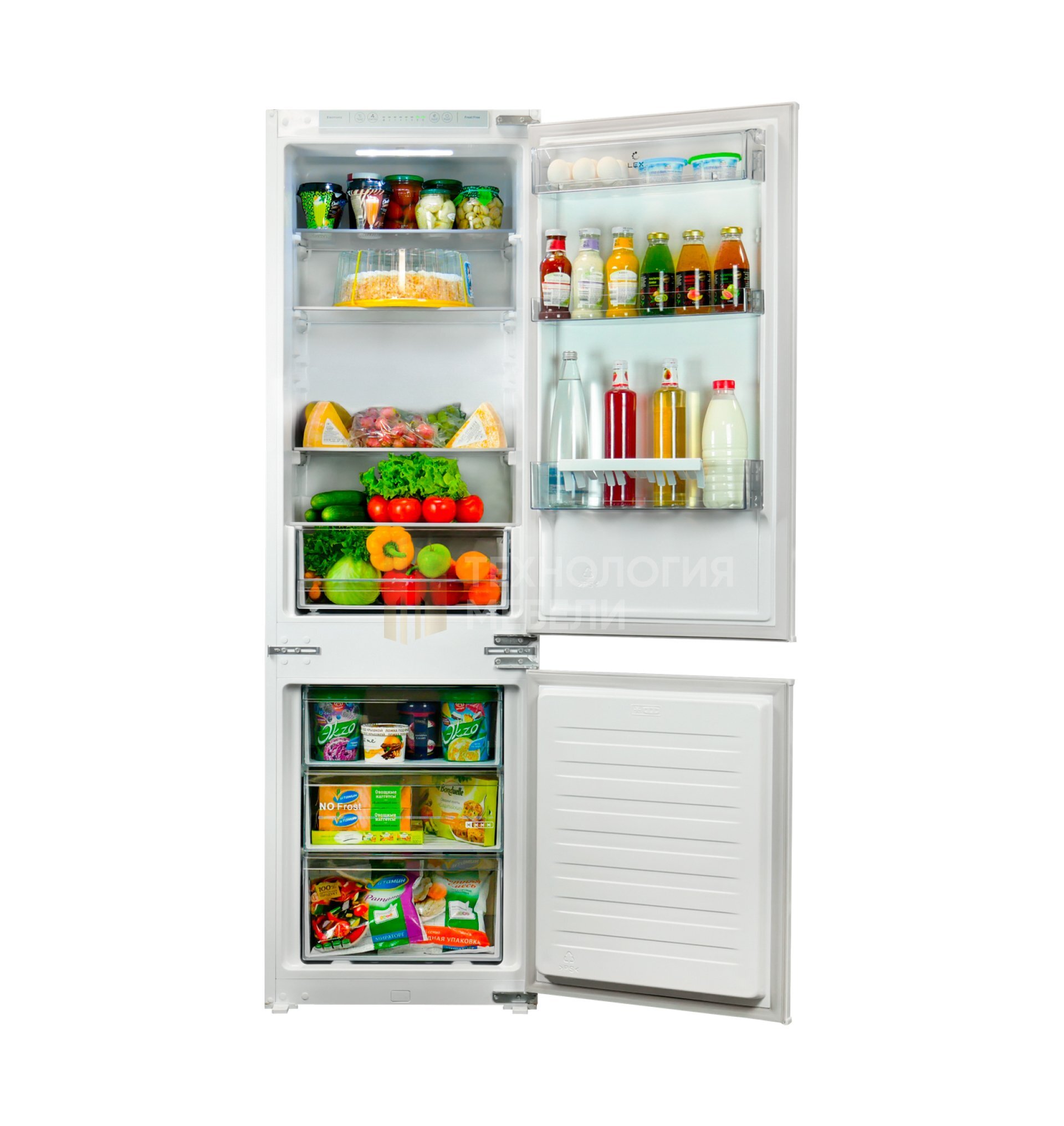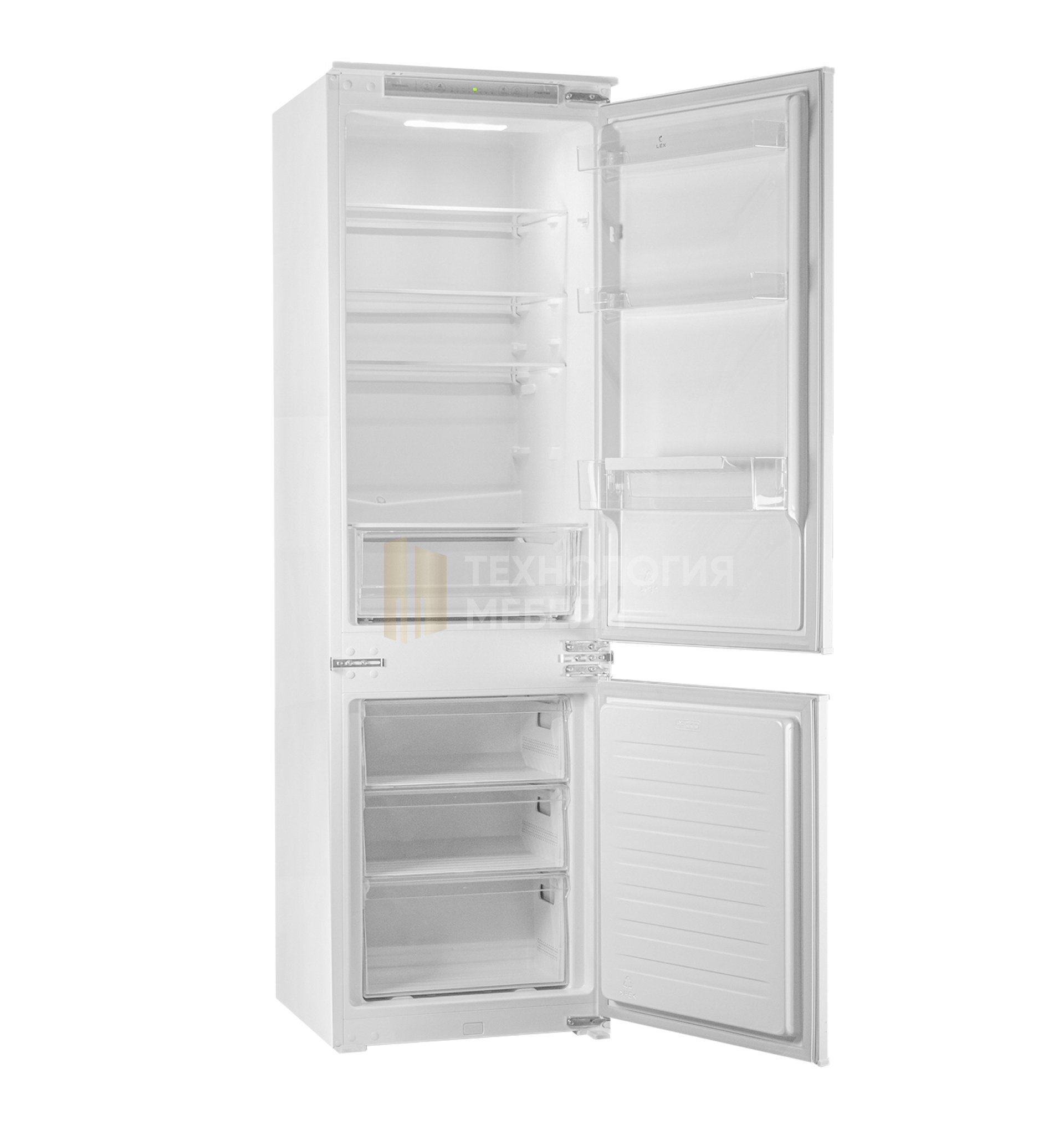 Встраиваемый двухкамерный холодильник LEX RBI 201 NF идеально интегрируется в эстетику кухонного пространства. Модель не требует разморозки. Чтобы в морозилке не намерзал лед, а холодильной камере был идеальный микроклимат, в модели объединены плюсы 2 систем: DeFrost — в холодильной камере, NoFrost — в морозильной. Такая инновация позволяет экономить электроэнергию. Холодильник имеет электронное управление, комфортную LED-подсветку. Габариты для встраивания указаны в технических характеристиках. Дверь модели может быть установлена как слева, так и справа.