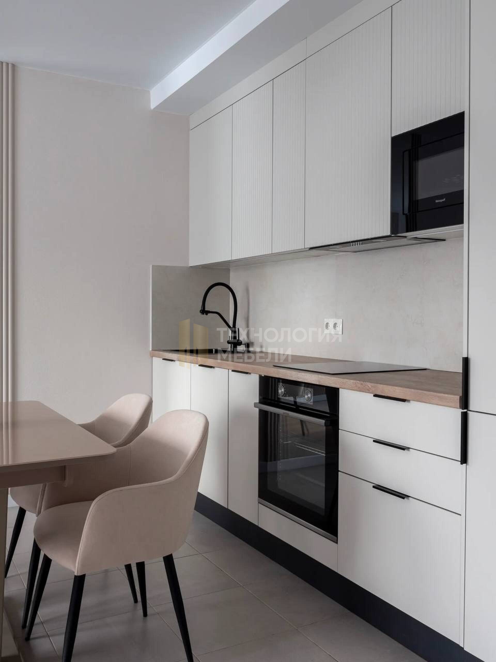 Кухня «Милка» — это изящное сочетание современного минимализма и мягкой светлой эстетики. Нежные оттенки фасадов создают ощущение чистоты и спокойствия, наполняя пространство светом и визуальной легкостью. Такой интерьер выглядит аккуратно, гармонично и идеально подходит для современных квартир и кухонь-гостиных. Особенностью модели являются фасады с деликатной вертикальной текстурой, которые придают кухне глубину и выразительность, сохраняя при этом лаконичный минималистичный стиль. Светлая рабочая зона с аккуратной столешницей и фартуком в нейтральных оттенках подчеркивает общую элегантность композиции. Продуманная линейная планировка кухни обеспечивает удобную организацию пространства: зона приготовления, мойка и система хранения расположены максимально эргономично. Высокий шкаф-пенал позволяет удобно разместить встроенную технику и увеличить полезное пространство для хранения. Кухня «Милка» станет отличным решением для тех, кто ценит светлый современный интерьер, функциональность и спокойную эстетику. Особенности модели: светлые фасады в современном минималистичном стиле декоративные фасады с вертикальной текстурой практичная и удобная линейная планировка высокий шкаф-пенал для встроенной техники эргономичная система хранения универсальный дизайн для современных интерьеров