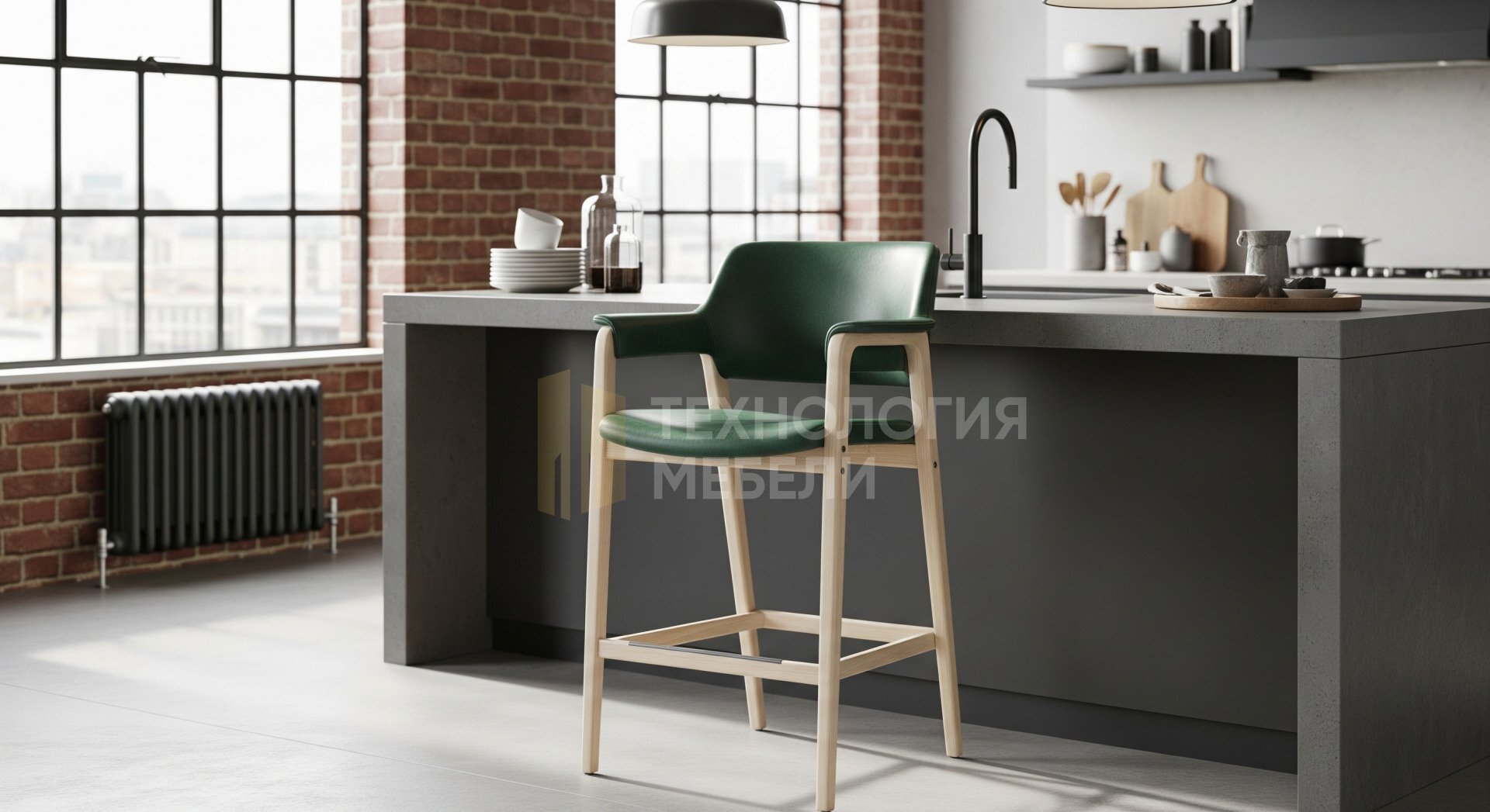 Представляем барный стул Монтеро для кухни. Каркас из гнутоклееной фанеры белого цвета на четырех ножках, без поворота и регулировки высоты. Стиль лофт-модерн. Обивка из натуральной кожи изумрудного цвета с ворсистой фактурой, наполнение холлофайбер, полумягкое сиденье 65 см. Средняя жесткая анатомическая спинка с подлокотниками выдержит до 150 кг. Доступен в цветах: орех, синий, бордо, ваниль, светлый дуб. Не штабелируется. Основа - массив дерева!