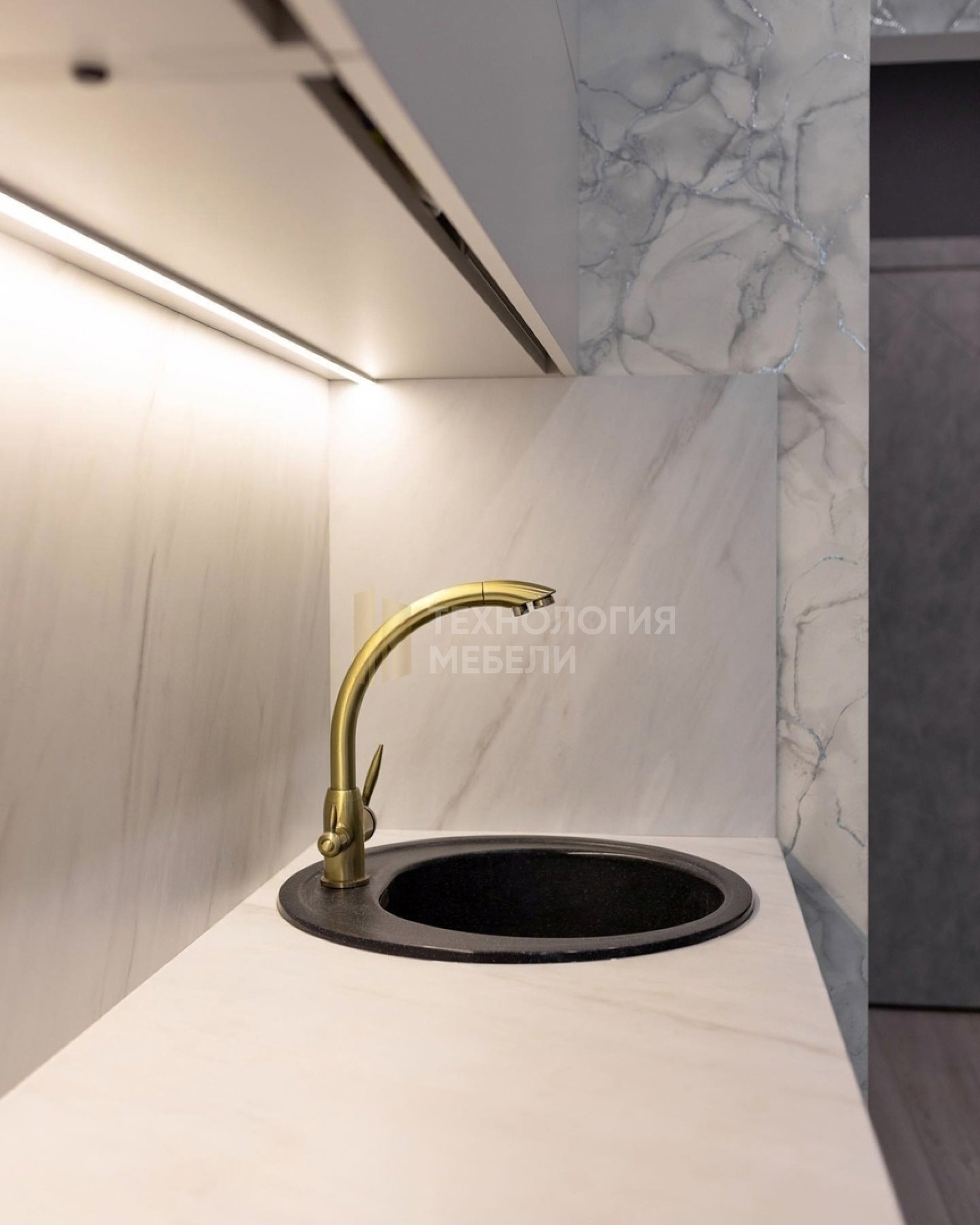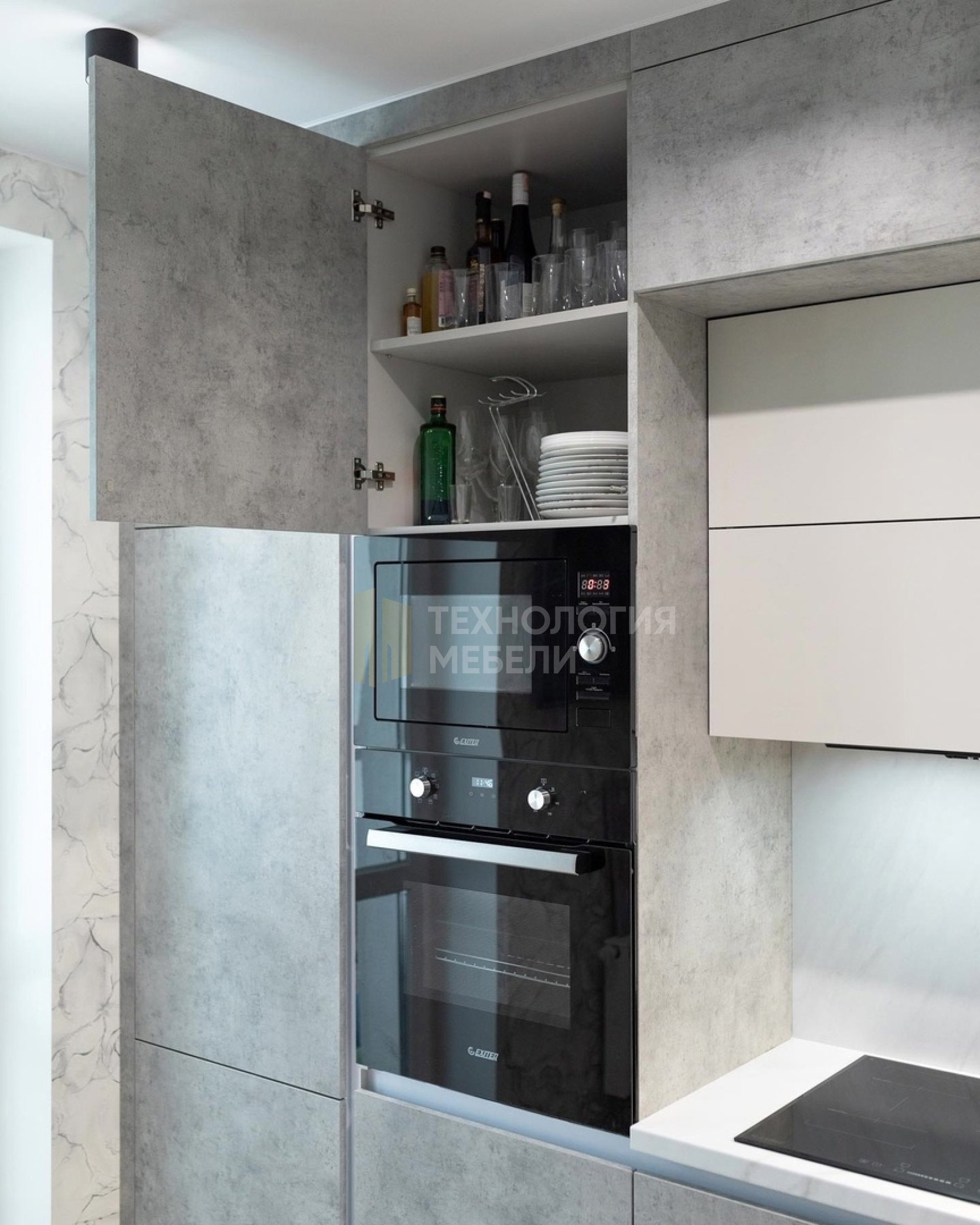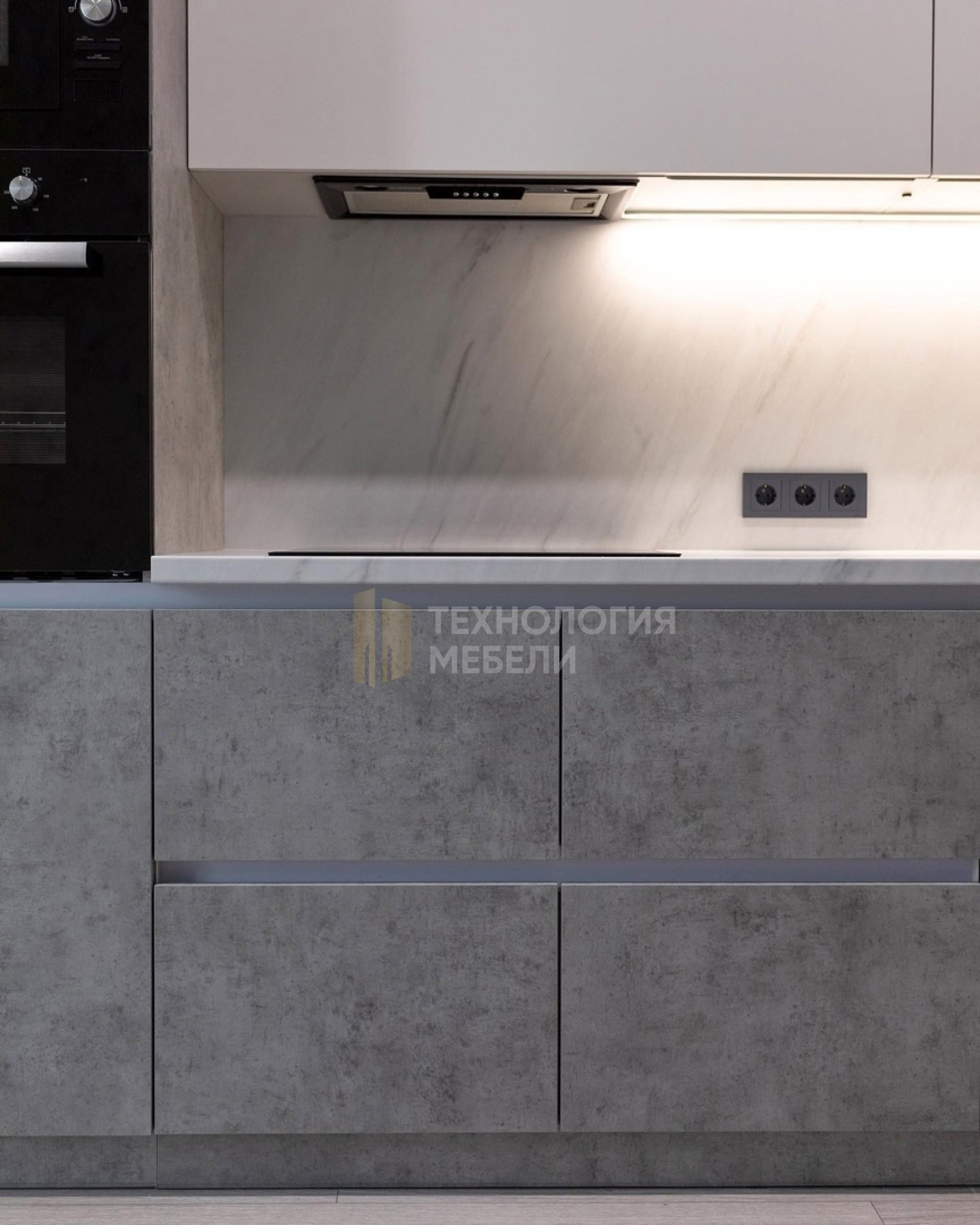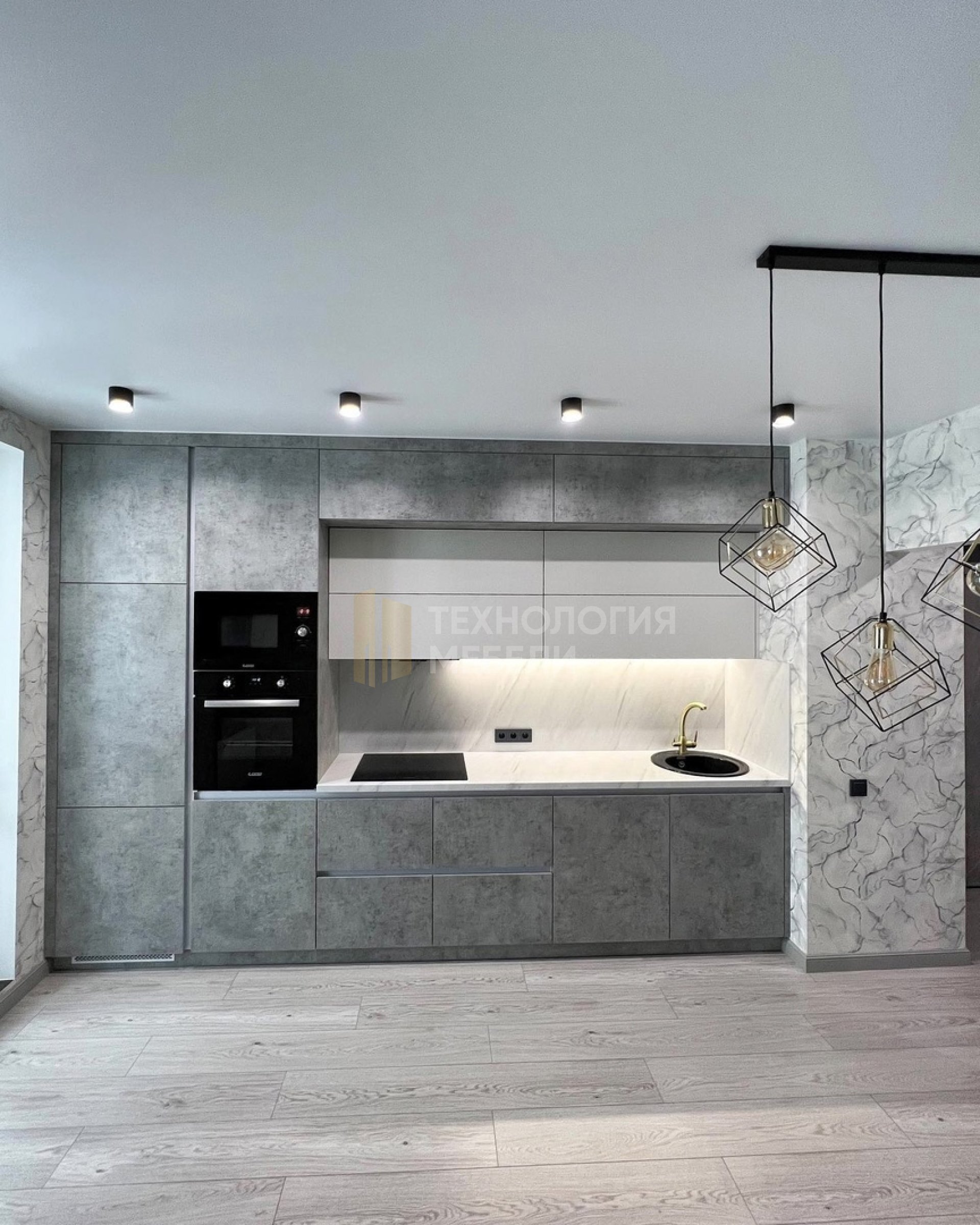 Кухонный гарнитур «Просвет» – это современное решение для организации пространства, выполненное в сдержанном и элегантном стиле лофт. Фасады кухонных шкафов отличаются оригинальной текстурой, имитирующей бетон, что придает интерьеру индустриальный шарм и визуальную глубину. Преобладающий серый цвет фасадов гармонично сочетается с белыми элементами, создавая ощущение простора и чистоты. Кухонный гарнитур отличается минималистичным дизайном, без лишних деталей и декора, что делает его универсальным решением для различных типов кухонь. Подсветка рабочей зоны и открытых полок не только обеспечивает функциональность, но и добавляет интерьеру атмосферу уюта и тепла. Столешница, выполненная в светлых тонах с выразительной мраморной текстурой, становится ярким акцентом и придает кухне изысканность. Данный гарнитур идеально подойдет для тех, кто ценит практичность, функциональность и современный дизайн. При производстве кухонных гарнитуров используется опыт и передовые технологии, накопленные предприятием «Технология мебели» в Санкт-Петербурге. Кухня «Просвет» станет не просто местом для приготовления пищи, а сердцем вашего дома, где приятно проводить время с семьей и друзьями. Этот гарнитур легко впишется в интерьер, оформленный в стиле минимализм, хай-тек или скандинавский стиль, подчеркивая индивидуальность вашего дома. Кухонный гарнитур «Просвет» – это сочетание эстетики, функциональности и высокого качества.