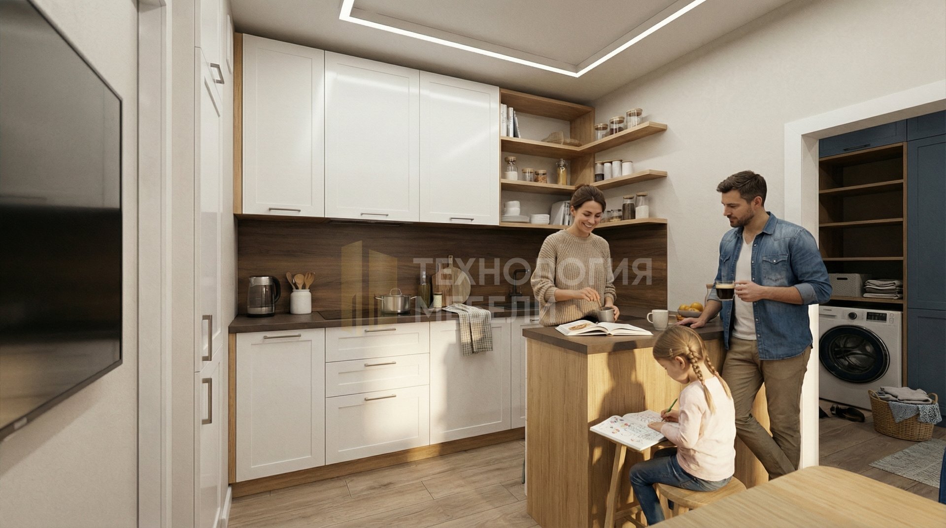 Приедем в удобное время с образцами материалов, сделаем точный лазерный замер и подготовим 3D-эскиз вашей будущей кухни.